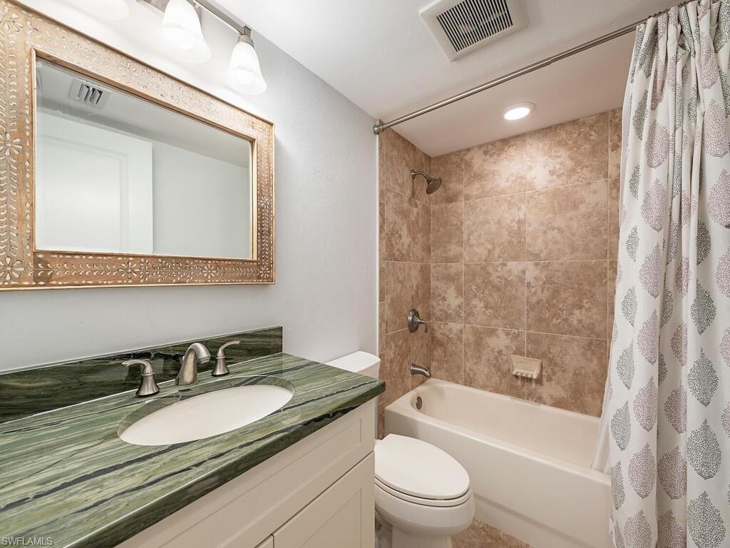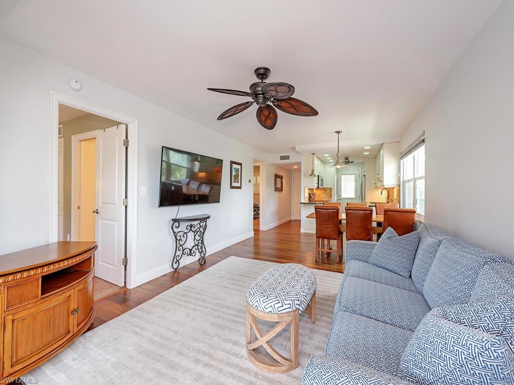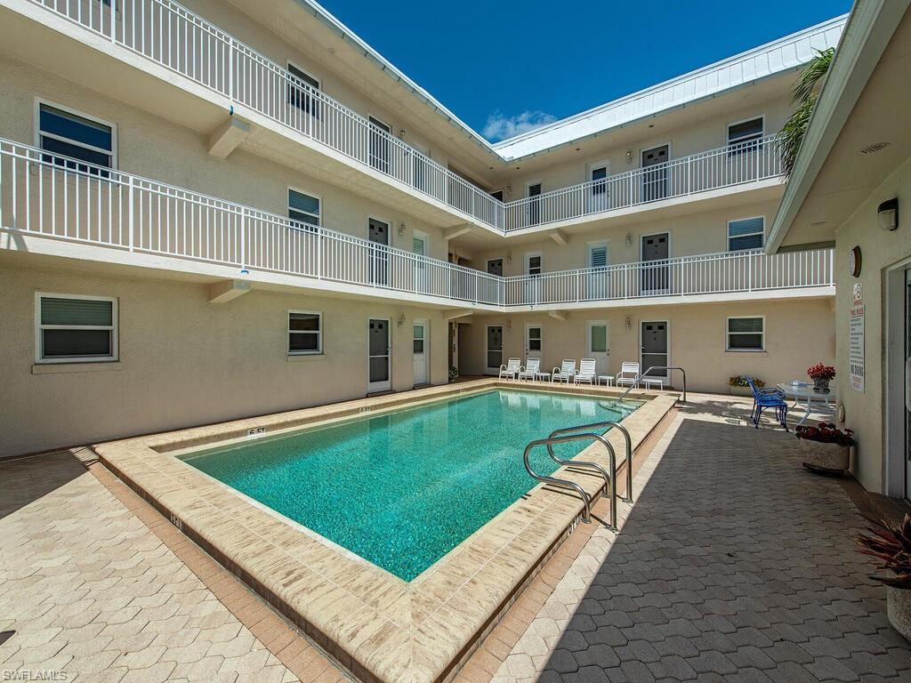 NO LAND LEASE FEE FOR THIS UNIT! Welcome to your coastal retreat, nestled in the heart of paradise! This two bedroom, two bathroom, top-floor corner unit effortlessly combines comfort, location, and the laid-back allure of beachside living. Abundant natural light casts a warm and inviting ambiance throughout the open floor plan. The airy, sunlit living space with western exposure creates a seamless flow, making this residence perfect for your personalized touches. Updated kitchen and baths feature granite counters and stainless steel appliances. This coastal gem is just a leisurely stroll to Naples’ famous sugar sand beaches and the Gulf of Mexico.