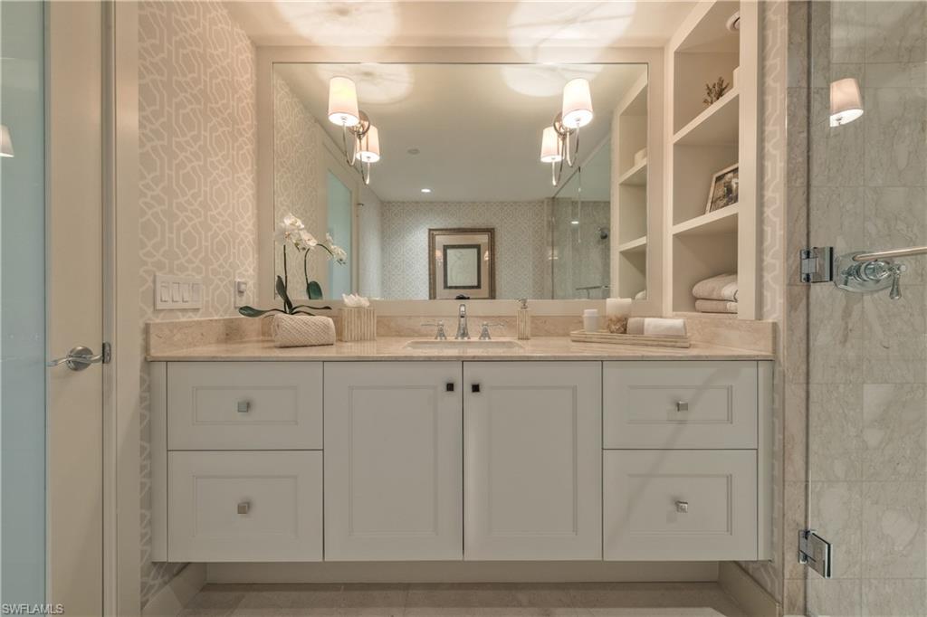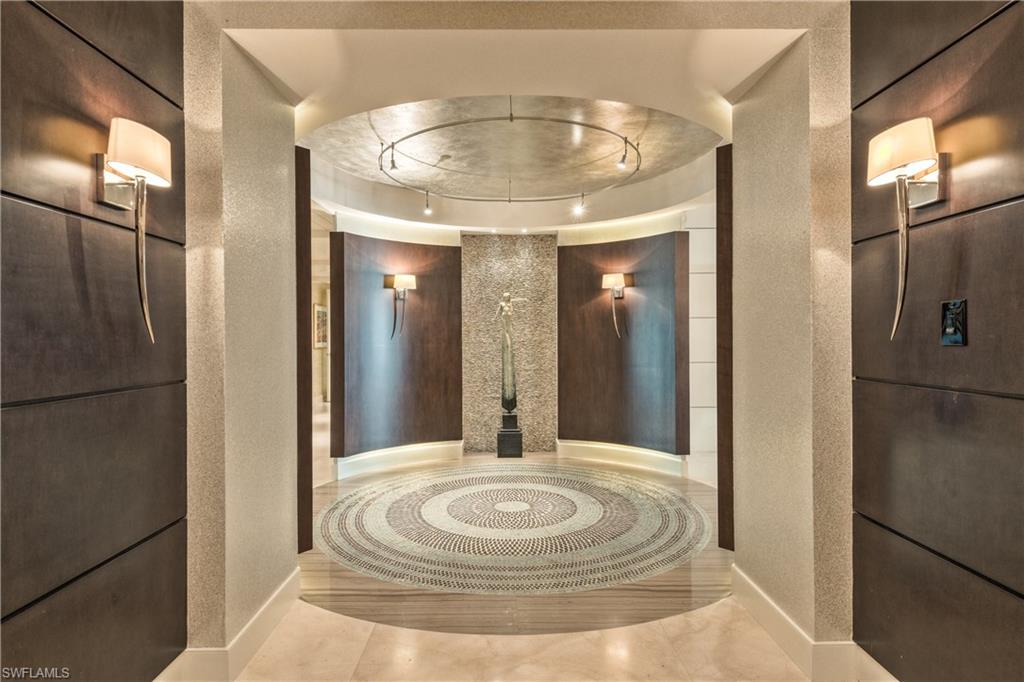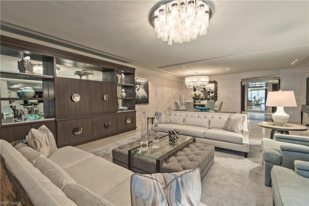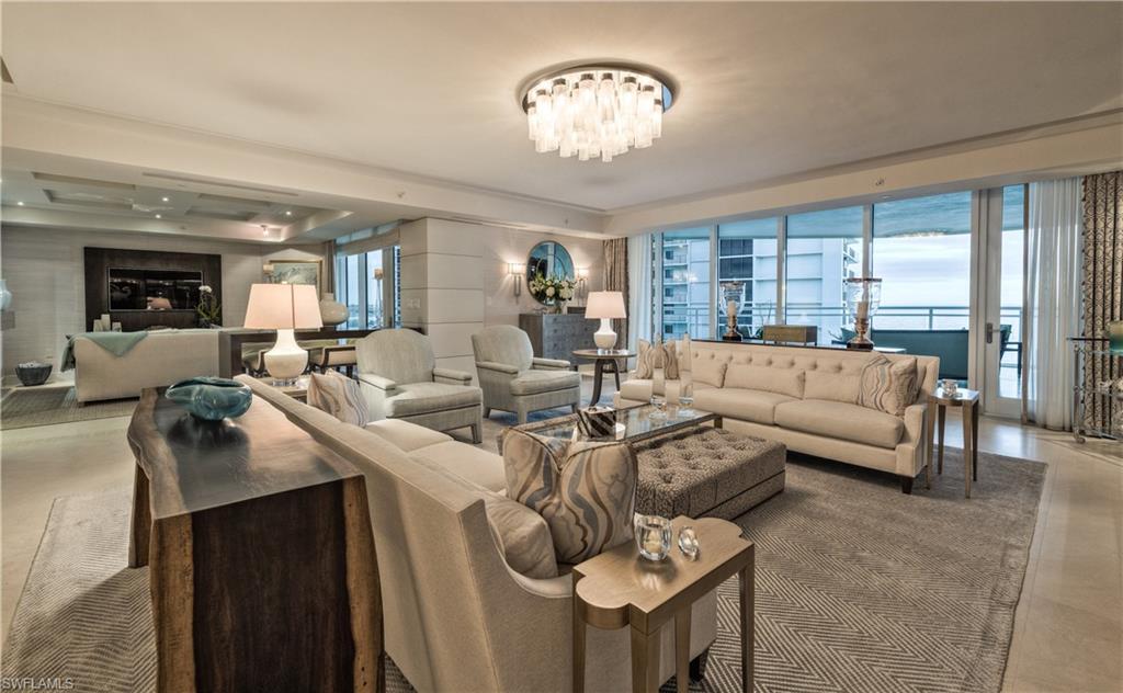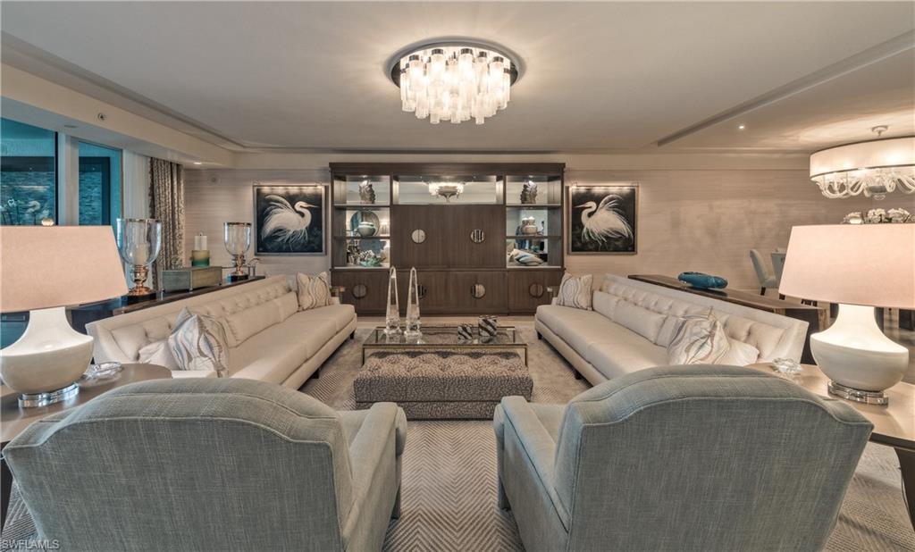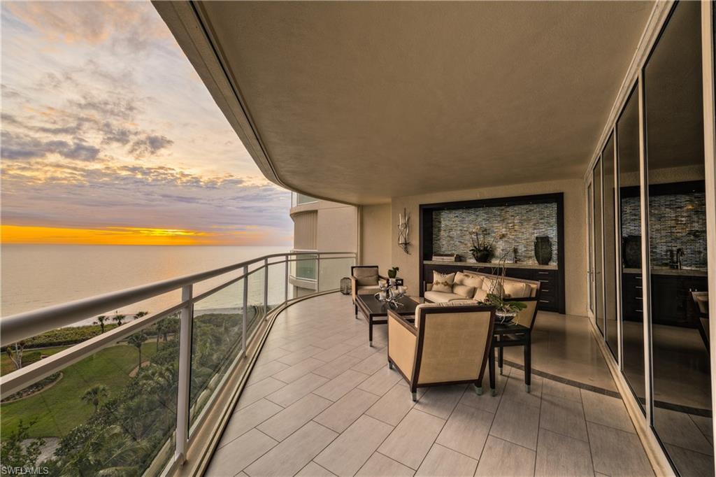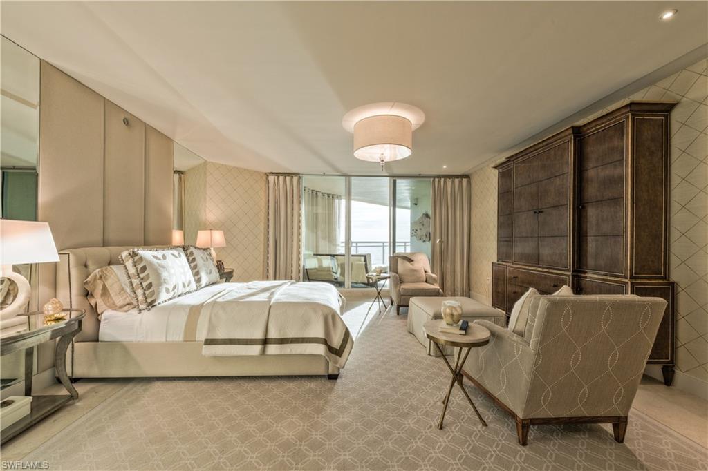 With sunset views and direct beachfront access, this stunning 4,548+ square foot condo, positioned on the 7th floor in exclusive Moraya Bay was designed with class. Enter through the private elevator and gorgeous marble foyer, the open-floor plan and floor-to-ceiling glass, allows for magnificent Gulf-front views from the Kitchen, Dining, Great Room and Master. This 3 bedroom + Den, 3.5 bath residence with exquisite finishes. Fully loaded kitchen with gas cooktop, duel ovens,dishwasher, flanked by a butlers pantry. The open lanai (with glass railings) makes sunsets feel close enough to touch. And when you’re not spending time inside this stunning space, Moraya Bay’s two pools, beach and poolside service, restaurant, gym, and full-time manned security and concierge services, make you feel as though you’re at a 5-star resort.