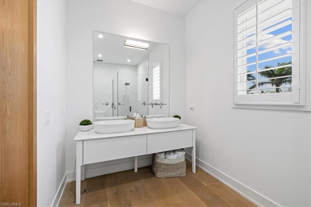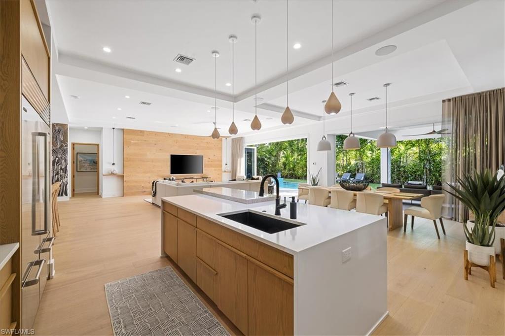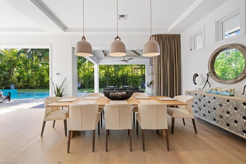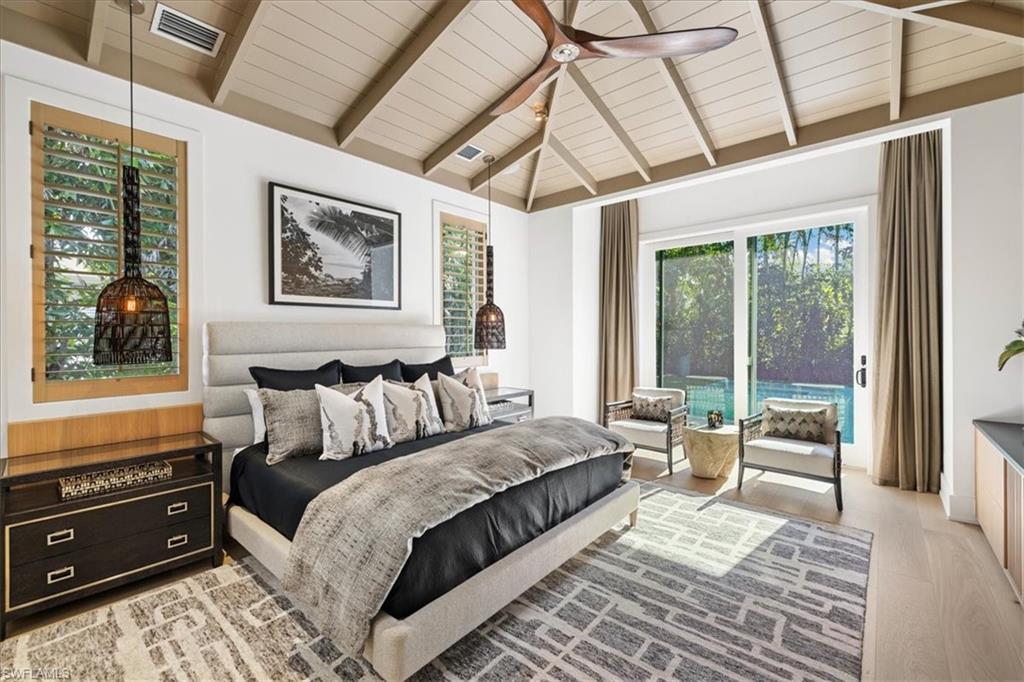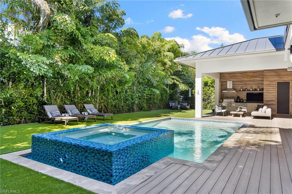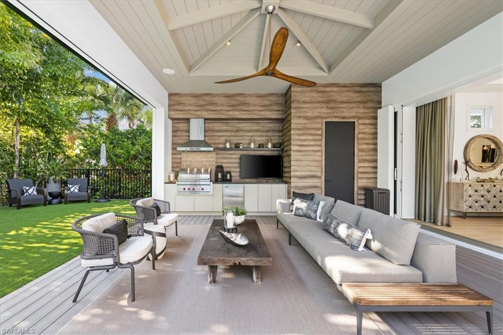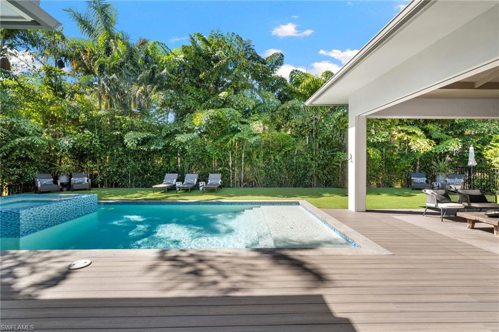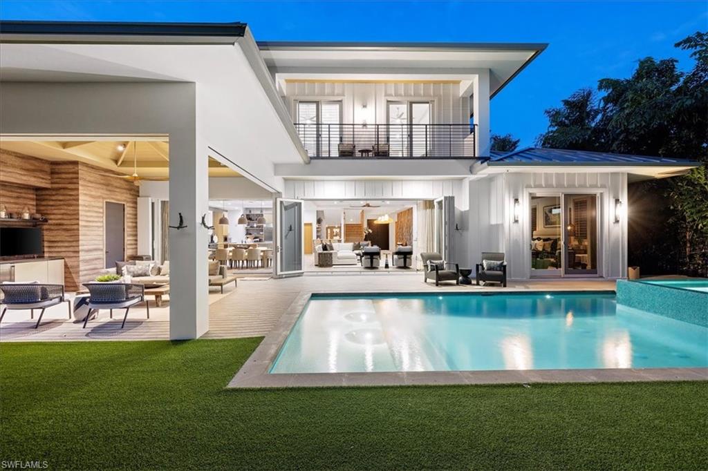 Located near the Gulf of Mexico in the heart of Olde Naples, this single family home offers a blend of elegance, sophistication & coastal charm with timeless appeal. The meticulously designed interior features impeccable craftsmanship & finishes while the open-concept layout provides an airy ambiance filled with natural light. A blend of functionality & aesthetic beauty, the gourmet kitchen boasts top-of-the-line appliances including a Lacanche range & custom cabinetry. Equipped with retractable screens, the covered lanai with summer kitchen offers a seamless transition from indoor to outdoor living and leads to the saltwater pool & spa, enveloped by lush landscaping. Unwind in the comfort of the primary suite, a retreat that exudes tranquility with a spacious ensuite featuring a soaking tub, walk-in shower & dual vanities. Each of the additional four guest bedrooms is thoughtfully designed with its own ensuite bathroom, providing privacy & comfort. In addition, the home is equipped with Lutron lighting, Sonos, climate-controlled garage, and a ChargePoint Home Flex EV charger. A wine room, study, lounge, powder room & pool bath further enhance the functionality & ease of living.
