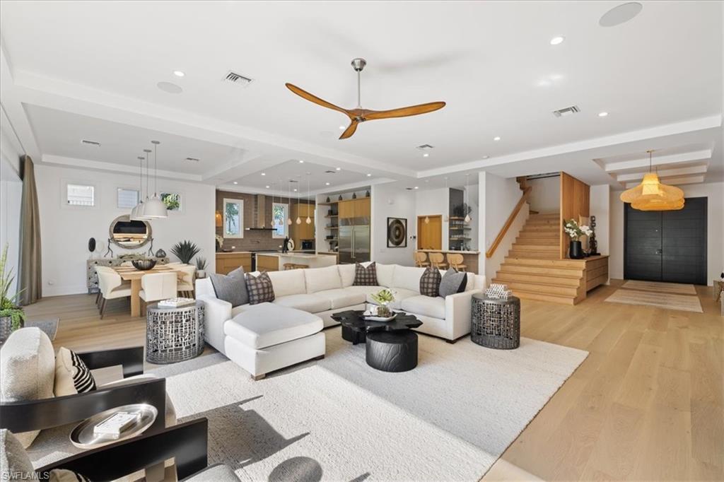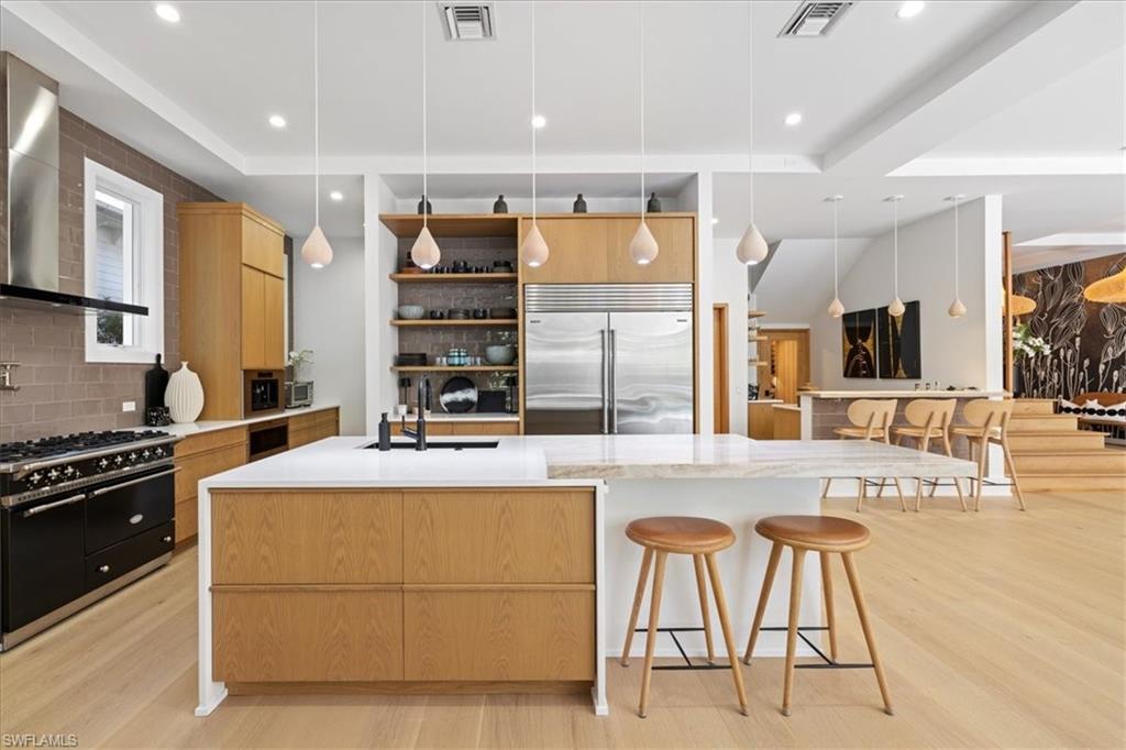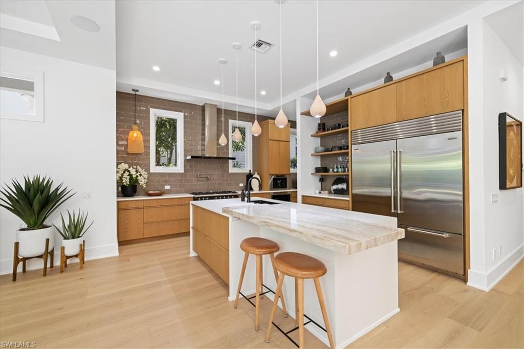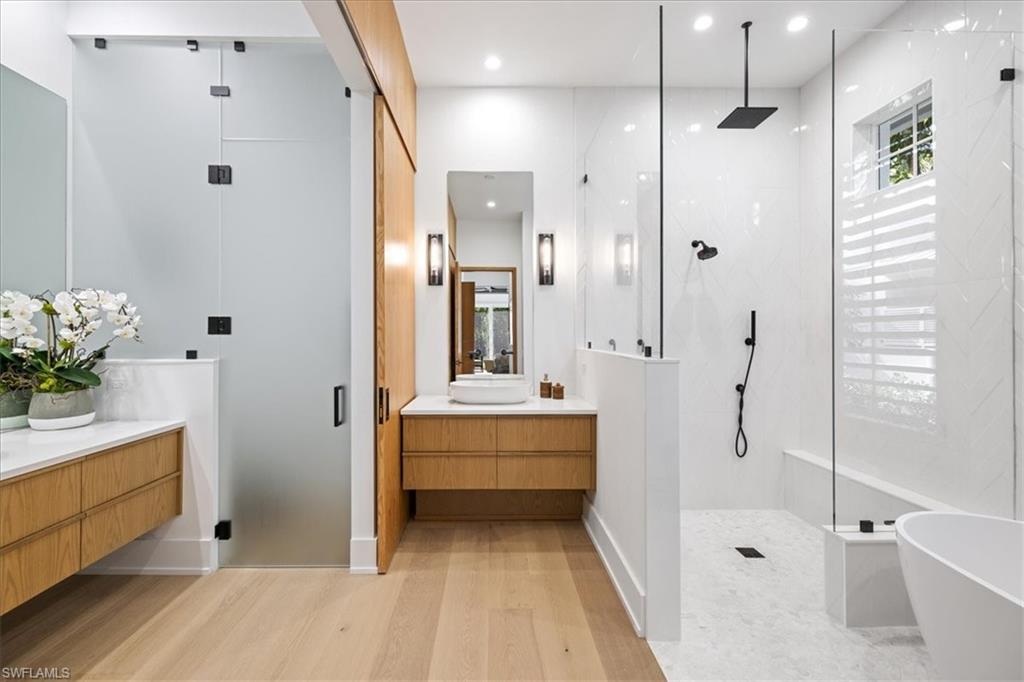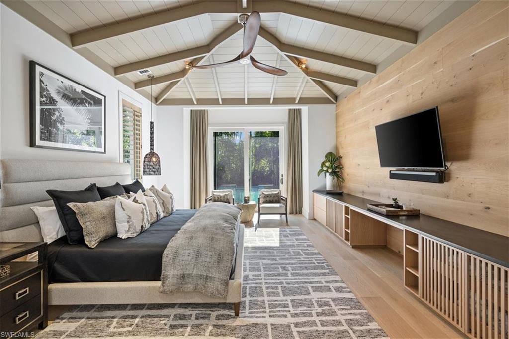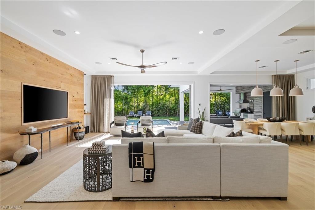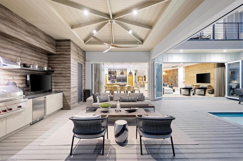 Located near the Gulf of Mexico in the heart of Olde Naples, this single family home offers a blend of elegance, sophistication & coastal charm with timeless appeal. The meticulously designed interior features impeccable craftsmanship & finishes while the open-concept layout provides an airy ambiance filled with natural light. A blend of functionality & aesthetic beauty, the gourmet kitchen boasts top-of-the-line appliances including a Lacanche range & custom cabinetry. Equipped with retractable screens, the covered lanai with summer kitchen offers a seamless transition from indoor to outdoor living and leads to the saltwater pool & spa, enveloped by lush landscaping. Unwind in the comfort of the primary suite, a retreat that exudes tranquility with a spacious ensuite featuring a soaking tub, walk-in shower & dual vanities. Each of the additional four guest bedrooms is thoughtfully designed with its own ensuite bathroom, providing privacy & comfort. In addition, the home is equipped with Lutron lighting, Sonos, climate-controlled garage, and a ChargePoint Home Flex EV charger. A wine room, study, lounge, powder room & pool bath further enhance the functionality & ease of living.