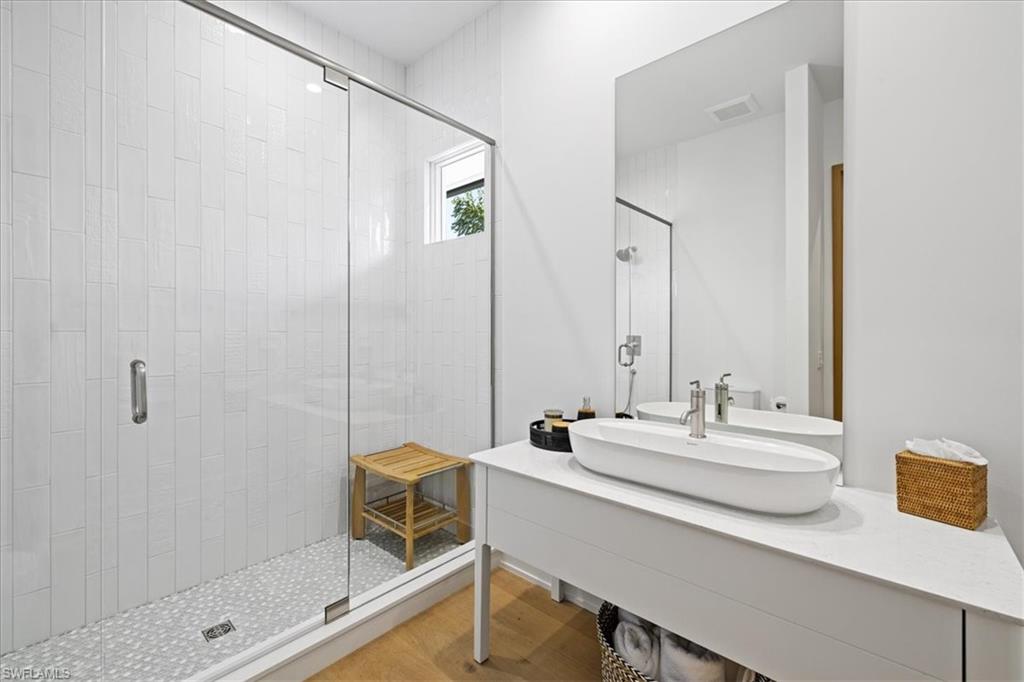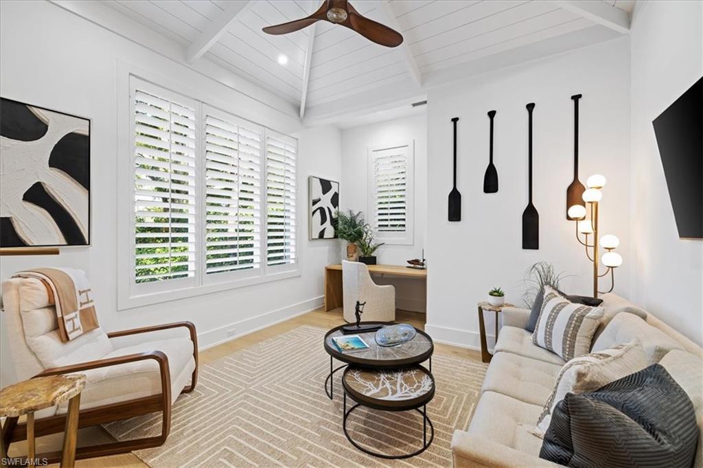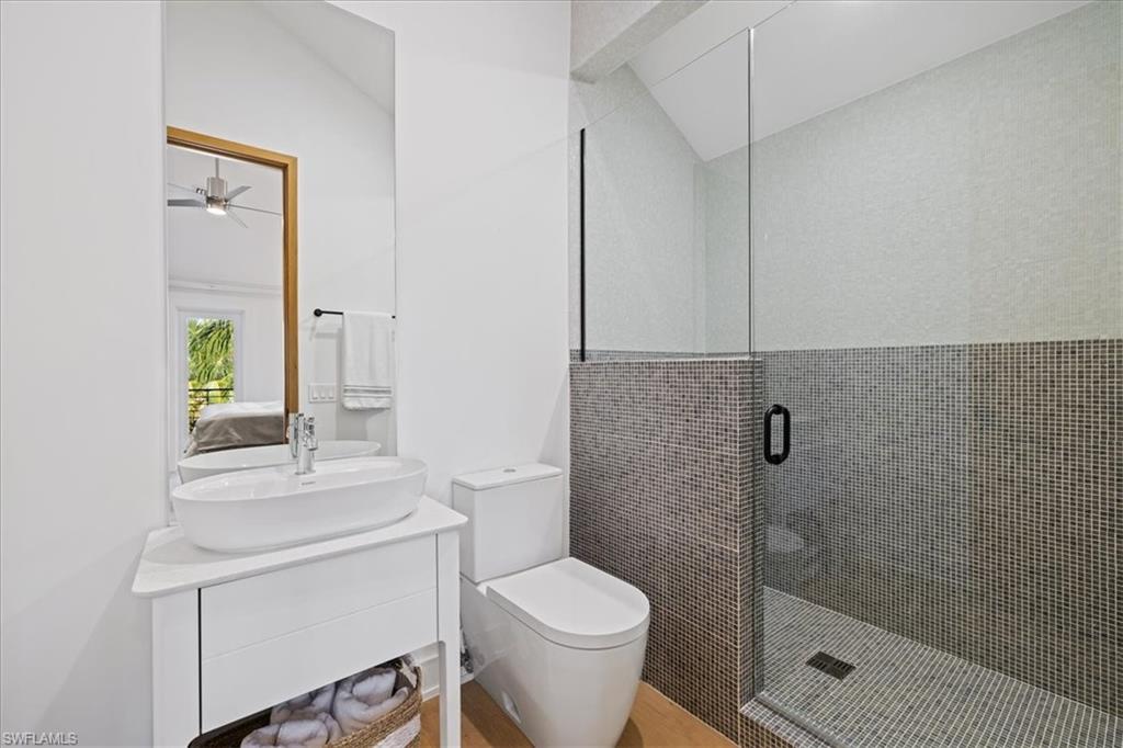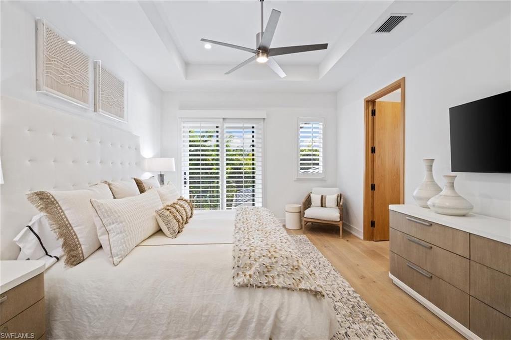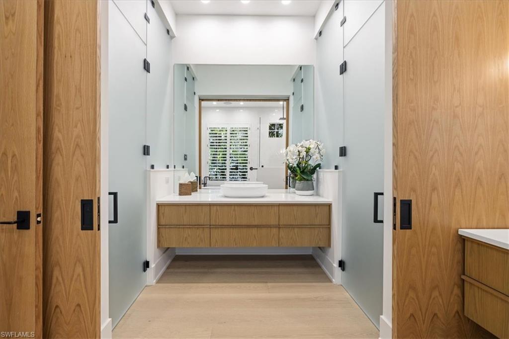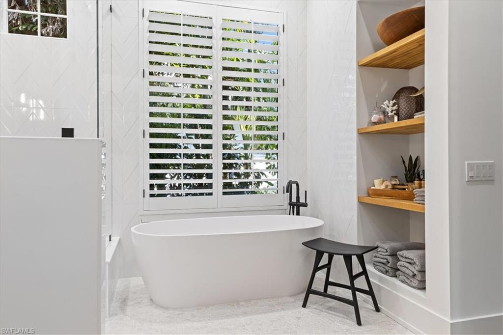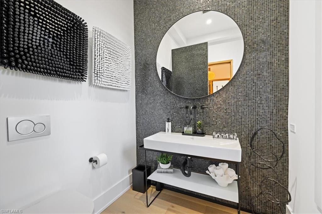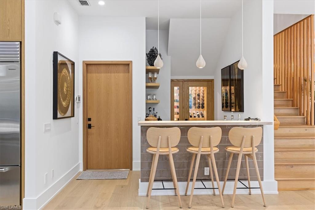 Located near the Gulf of Mexico in the heart of Olde Naples, this single family home offers a blend of elegance, sophistication & coastal charm with timeless appeal. The meticulously designed interior features impeccable craftsmanship & finishes while the open-concept layout provides an airy ambiance filled with natural light. A blend of functionality & aesthetic beauty, the gourmet kitchen boasts top-of-the-line appliances including a Lacanche range & custom cabinetry. Equipped with retractable screens, the covered lanai with summer kitchen offers a seamless transition from indoor to outdoor living and leads to the saltwater pool & spa, enveloped by lush landscaping. Unwind in the comfort of the primary suite, a retreat that exudes tranquility with a spacious ensuite featuring a soaking tub, walk-in shower & dual vanities. Each of the additional four guest bedrooms is thoughtfully designed with its own ensuite bathroom, providing privacy & comfort. In addition, the home is equipped with Lutron lighting, Sonos, climate-controlled garage, and a ChargePoint Home Flex EV charger. A wine room, study, lounge, powder room & pool bath further enhance the functionality & ease of living.
