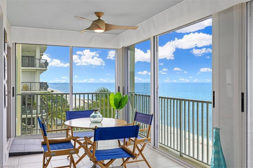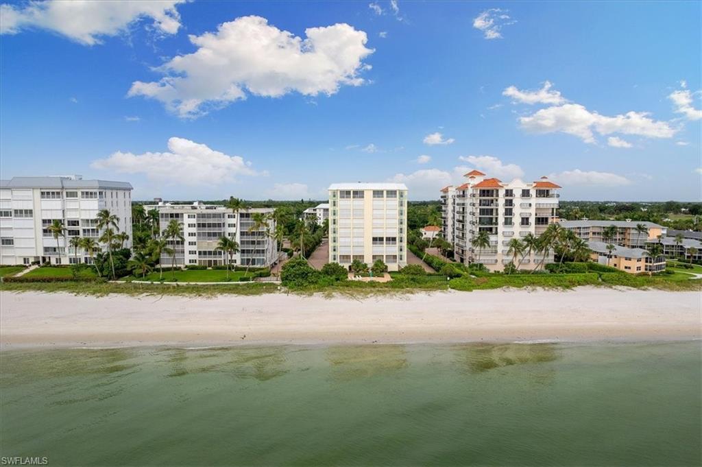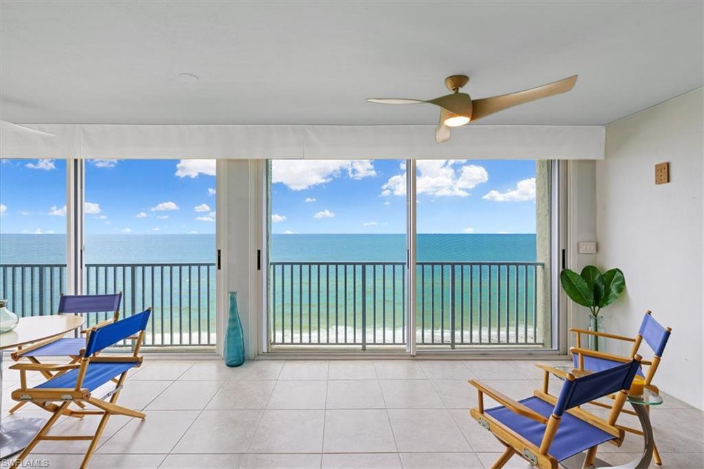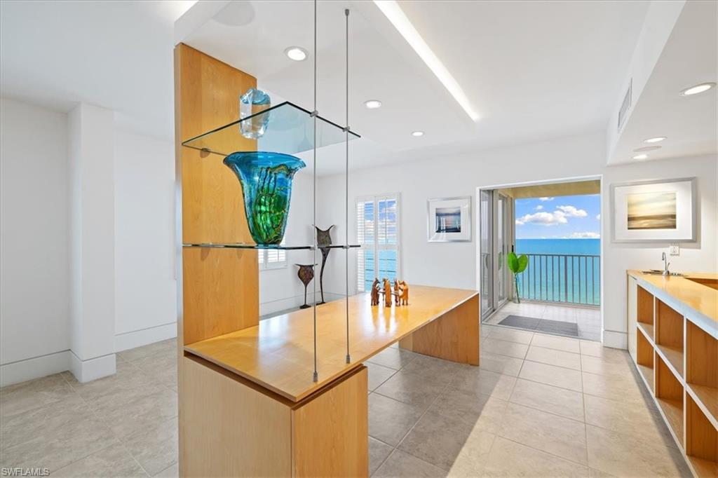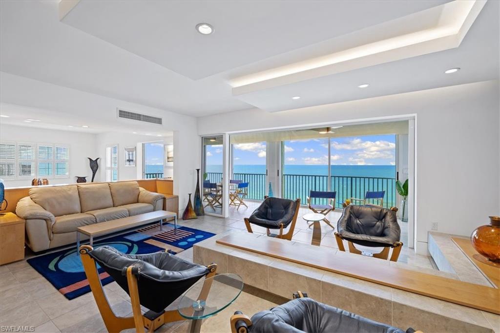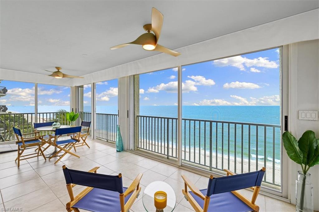 This beachfront end-unit condo showcases stunning western Gulf of Mexico views, perfect for dolphin watching and sunsets. The single-level residence is customized and embodies the beachfront living spirit. The open floor plan, with tile flooring, plantation shutters, and custom lighting, is ideal for entertaining. The kitchen boasts sleek cabinetry, stainless steel countertops, and a center island cooktop with an attached dining table. The living room and den feature custom built-ins, leading to a spacious enclosed lanai. The primary suite includes dual walk-in closets, an ensuite bathroom, and an eastern facing balcony for sunrise views. The Whitehall is a low-density building with under building parking, storage, a community pool, exercise room, and an on-site manager. Steps away from Naples’ famous beaches, the new Four Seasons Resort, and a short drive to 5th Avenue South. Own in this renowned boutique building south of Doctors Pass!