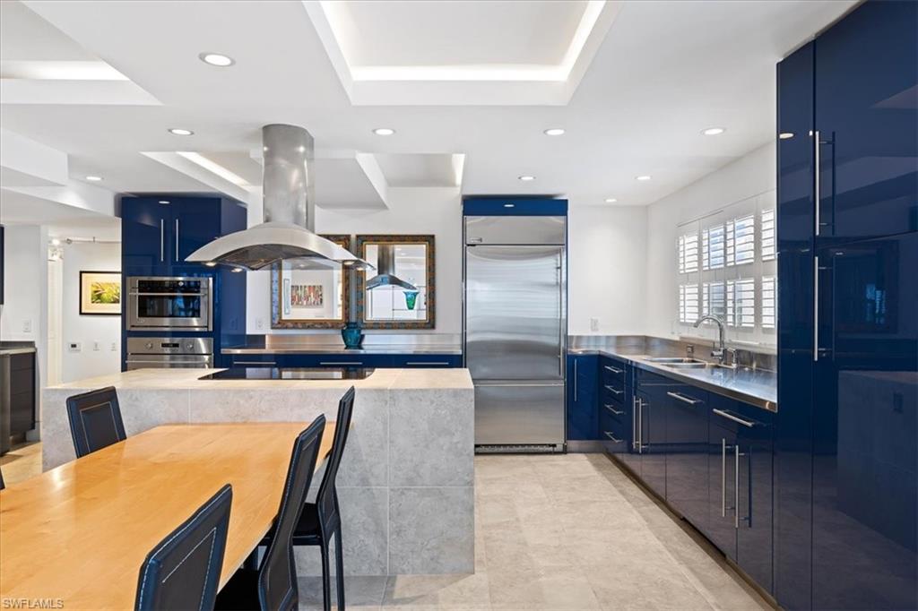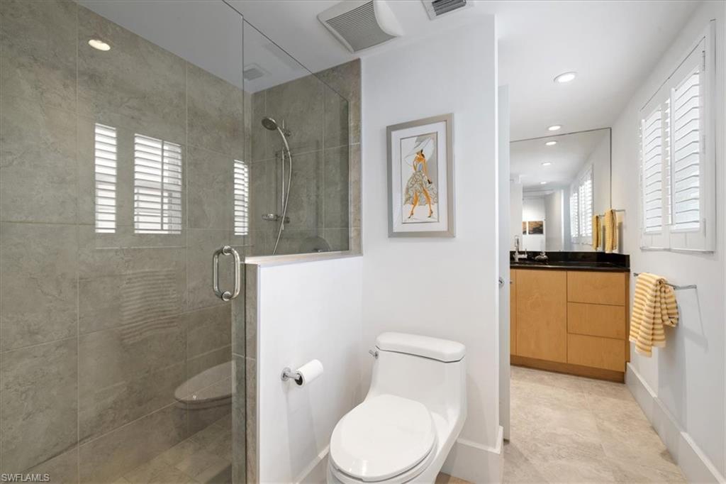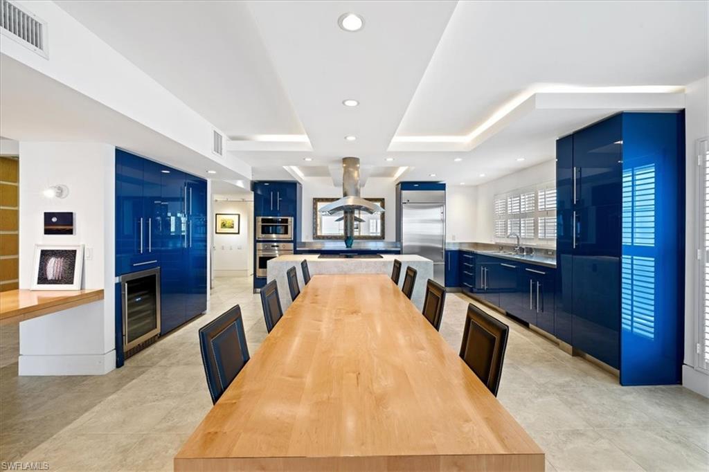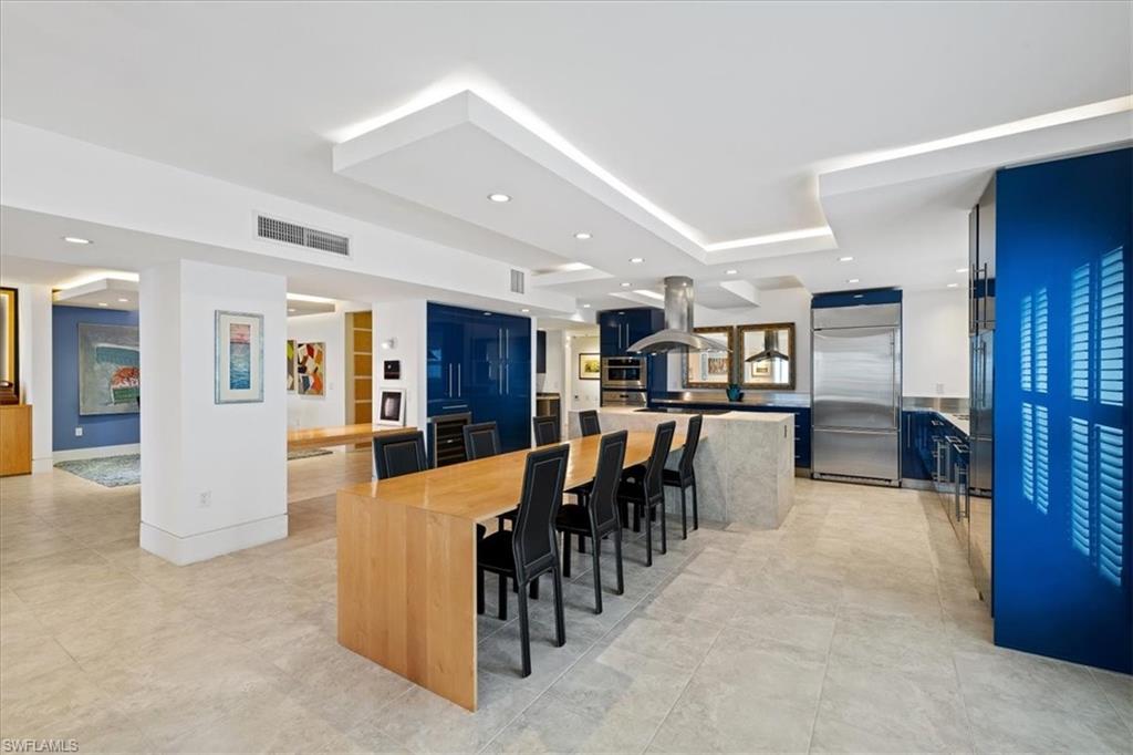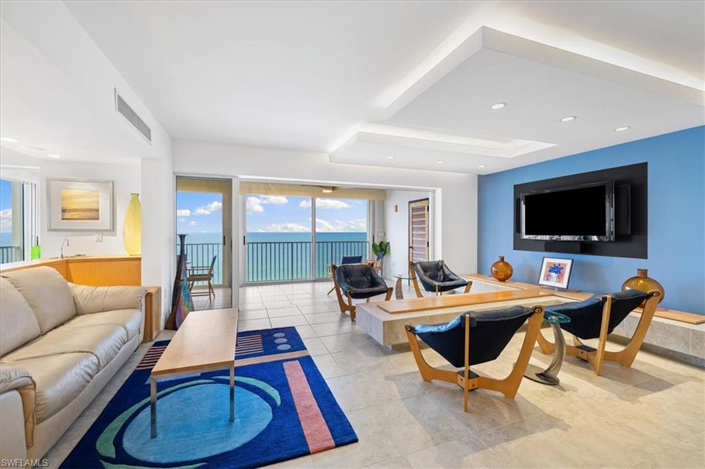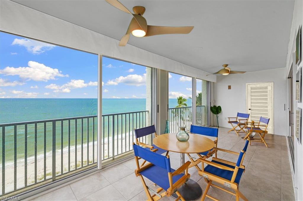 This beachfront end-unit condo showcases stunning western Gulf of Mexico views, perfect for dolphin watching and sunsets. The single-level residence is customized and embodies the beachfront living spirit. The open floor plan, with tile flooring, plantation shutters, and custom lighting, is ideal for entertaining. The kitchen boasts sleek cabinetry, stainless steel countertops, and a center island cooktop with an attached dining table. The living room and den feature custom built-ins, leading to a spacious enclosed lanai. The primary suite includes dual walk-in closets, an ensuite bathroom, and an eastern facing balcony for sunrise views. The Whitehall is a low-density building with under building parking, storage, a community pool, exercise room, and an on-site manager. Steps away from Naples’ famous beaches, the new Four Seasons Resort, and a short drive to 5th Avenue South. Own in this renowned boutique building south of Doctors Pass!