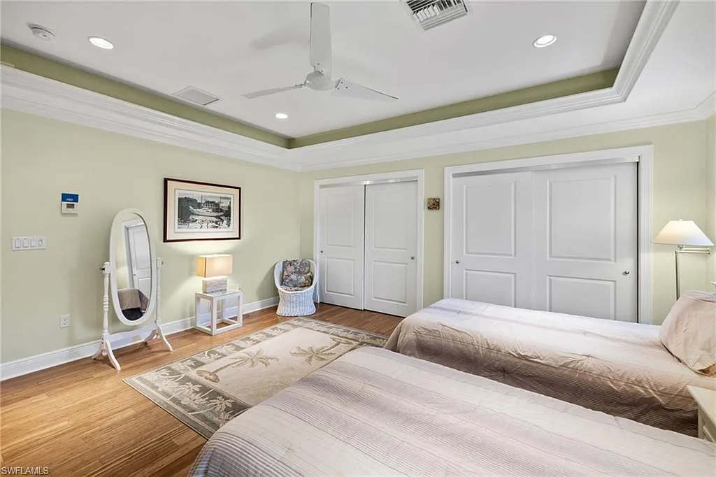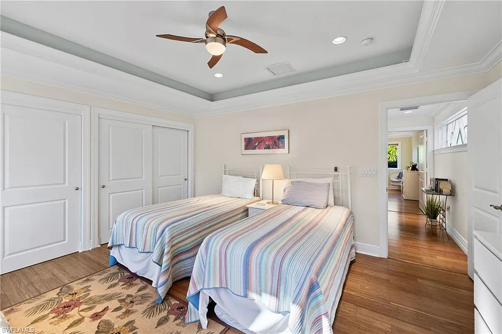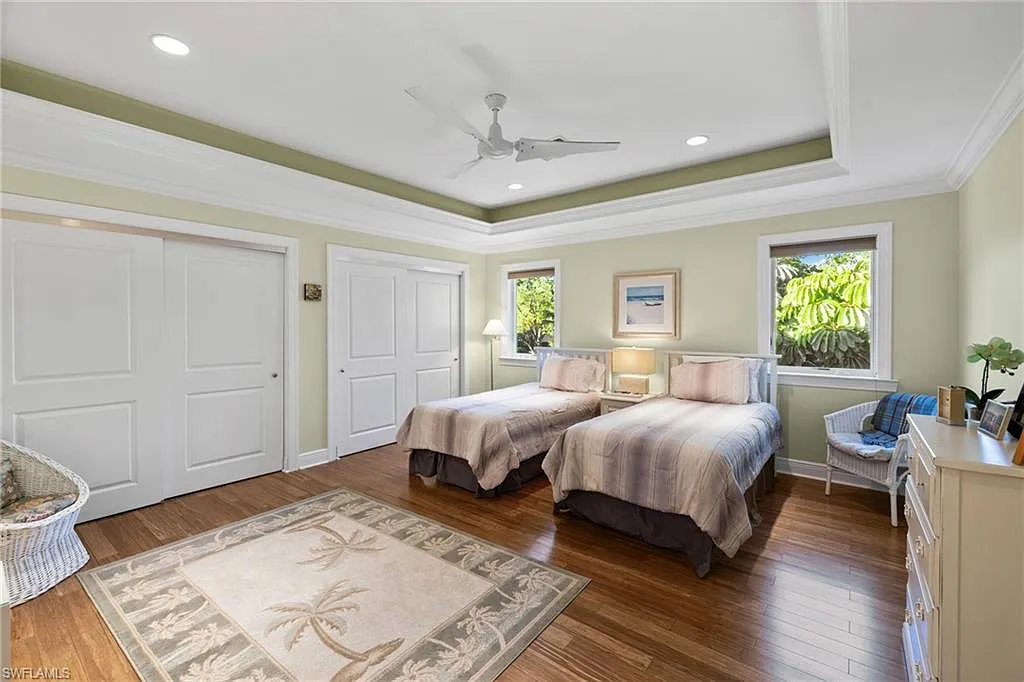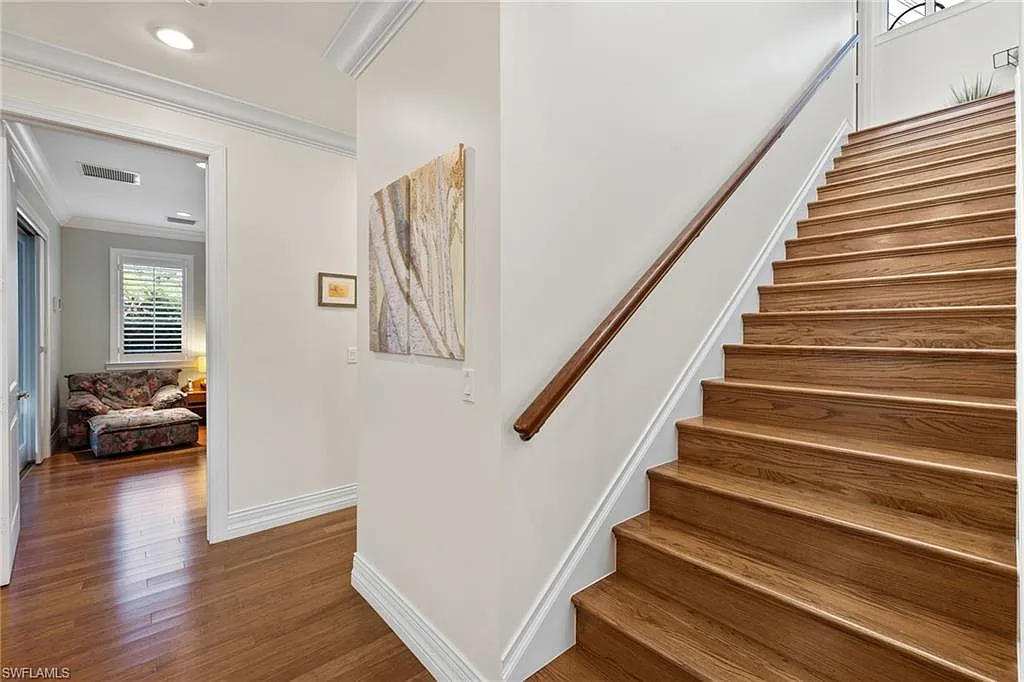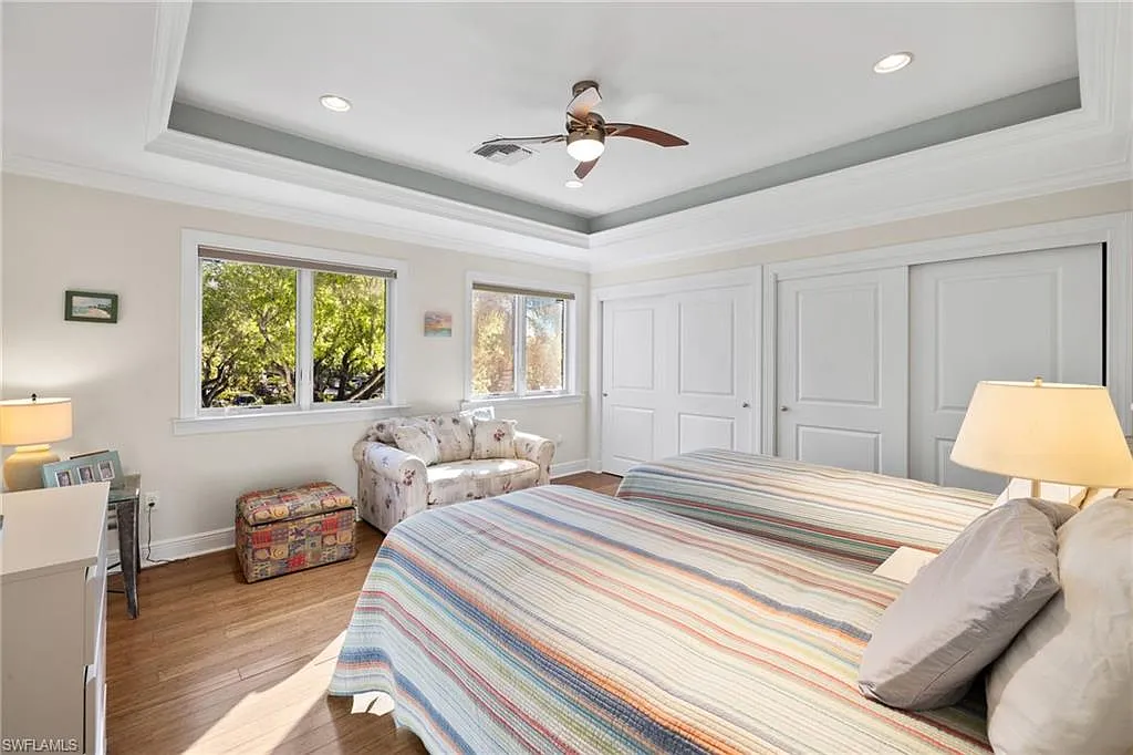 Built in 2012 and perfectly positioned in a coveted X500 flood zone, offering the peace of mind and exceptional appeal that come with its desirable elevated location, this home features three spacious bedrooms, including a first-floor primary suite and two private guest bedrooms on the second level. Thoughtfully designed and perfect for both daily living and entertaining with a versatile den on the main level for further flexibility as a home office, library, or creative space. Warm wood flooring flows seamlessly throughout, while tray ceilings with crown molding exude sophistication. The open-concept great room transitions effortlessly from the kitchen, which boasts stainless steel appliances, a central island with a breakfast bar, and generous storage perfect for casual dining or meal preparation. The first-floor primary suite is a private oasis, featuring a luxurious ensuite with a tub, walk-in shower, and dual sinks. Upstairs, the guest bedrooms are generously sized, offering comfort and privacy for family and friends.
