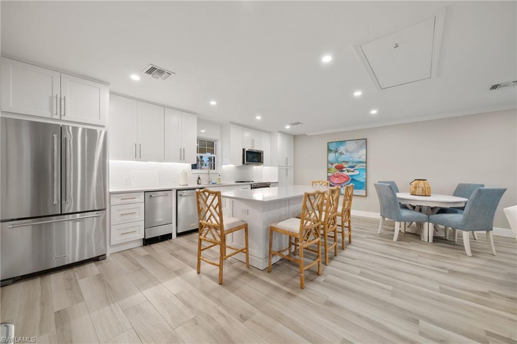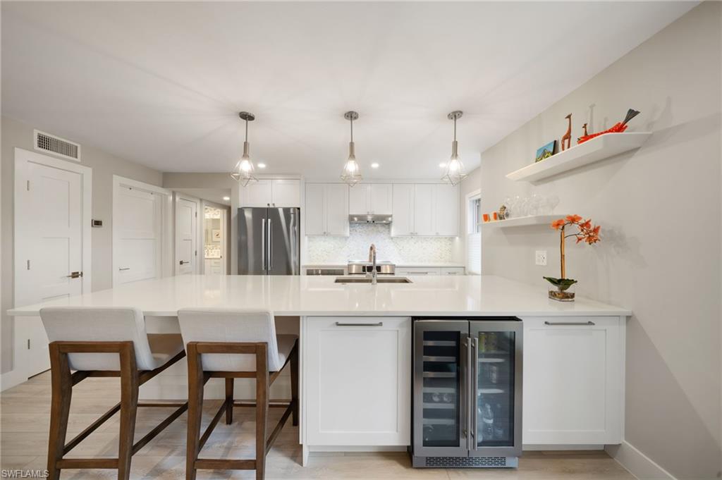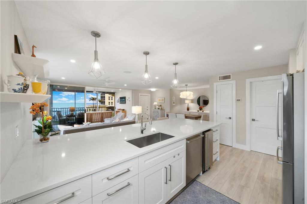 | Experience unparalleled luxury in this meticulously renovated beachfront condominium which has been priced to sell! Welcome to a fully renovated residence in the heart of The Moorings, offering luxurious living with breathtaking Gulf of Mexico views. This 3-bedroom, 2-bathroom beachfront condominium spans 1,800 square feet and redefines coastal elegance with its thoughtful updates and open-concept design. Step inside to discover a bright and airy great room floor plan, perfect for entertaining or relaxing after a day on the beach. The sleek, modern kitchen is a chef’s dream, featuring ample counter space, stainless steel appliances, a standalone ice maker, a wine chiller, and a water purification system. Beautifully updated lighting, floors, and custom cabinetry flow throughout, elevating the home’s style and functionality. The primary suite is a private oasis, complete with a spacious walk-in closet, dual sinks with Kohler smart mirrors, a glass-enclosed shower, and a private water closet. Motorized Hunter Douglas shades in the bedrooms and great room offer both convenience and sophistication. One of the guest bedrooms has been transformed into a cozy den, perfect for work, hobbies, or unwinding with a good book. |