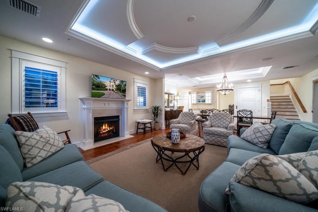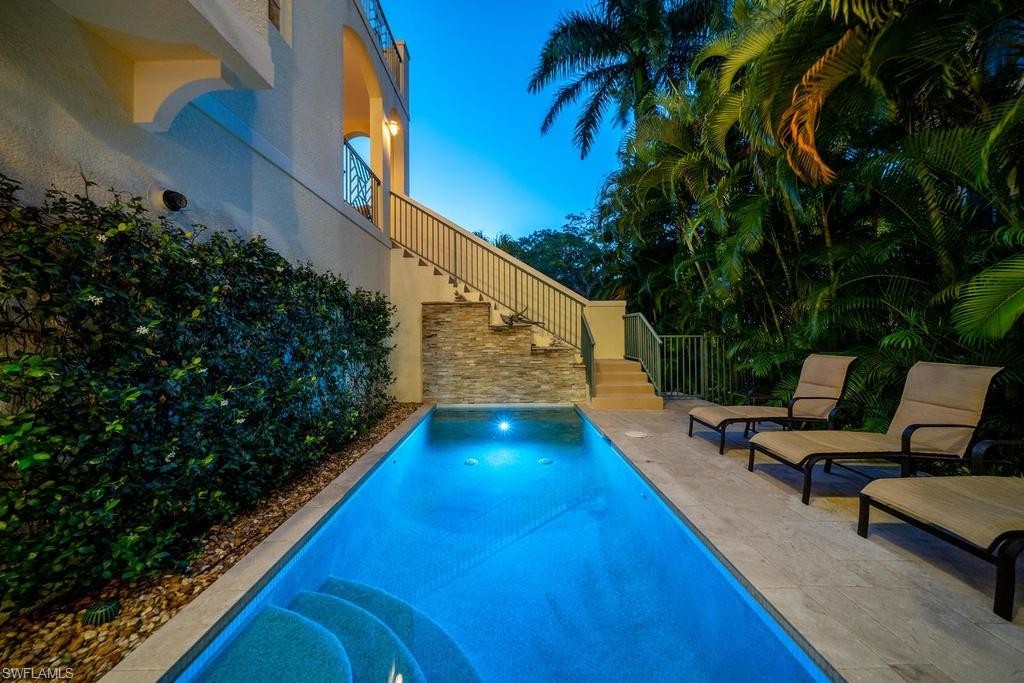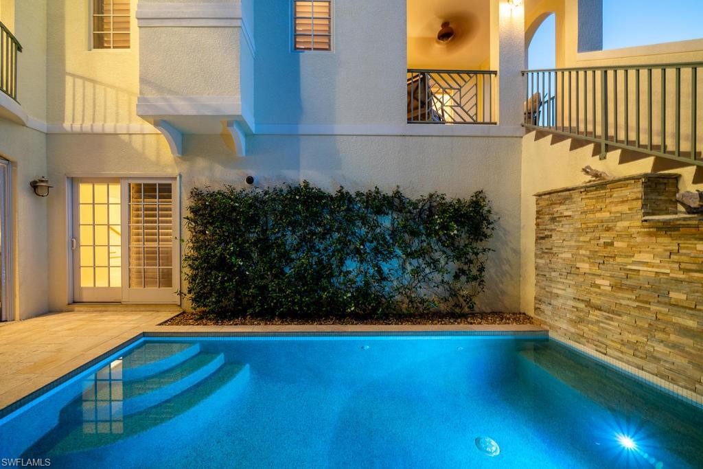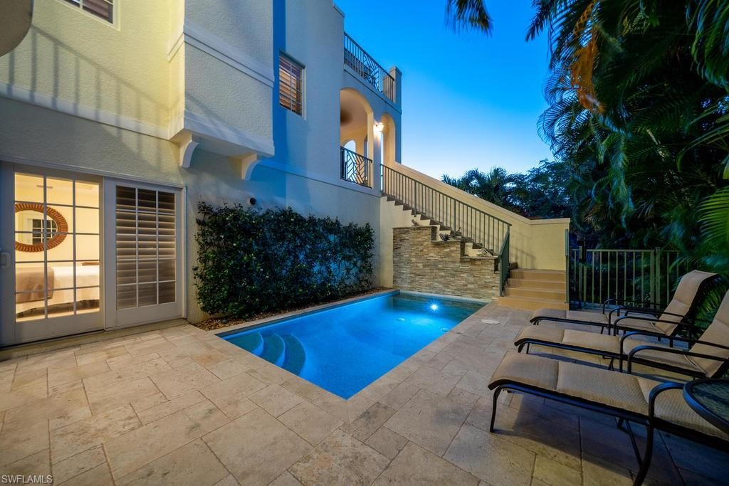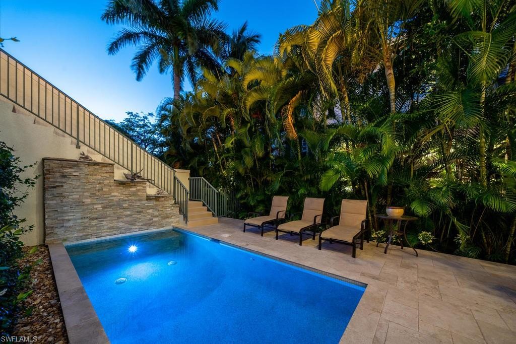 Located within steps of the internationally recognized cultural district of Fifth Avenue South in the heart of Old Naples this stunning three bedroom, plus den condominium has a private two car garage and a private pool. Thoughtfully designed with a great room floor plan, the kitchen features a Wolf range, Subzero refrigerator, and quartz countertops. Multiple balconies overlook the gorgeous landscaping and private pool. The great room features a gas fireplace, wet bar with wine refrigerator, and elegant wood flooring. The expansive outdoor patio garden area with a generous outside living area includes an impressive pool, summer kitchen, and grill. The luxurious master suite is spacious and comfortable with a luxurious master bathroom and walk-in closet. This condo is nestled just blocks from the celebrated beaches of Naples, Florida. Highly sought after and rarely available, this condominium represents a rare opportunity to enjoy the best Naples has to offer.