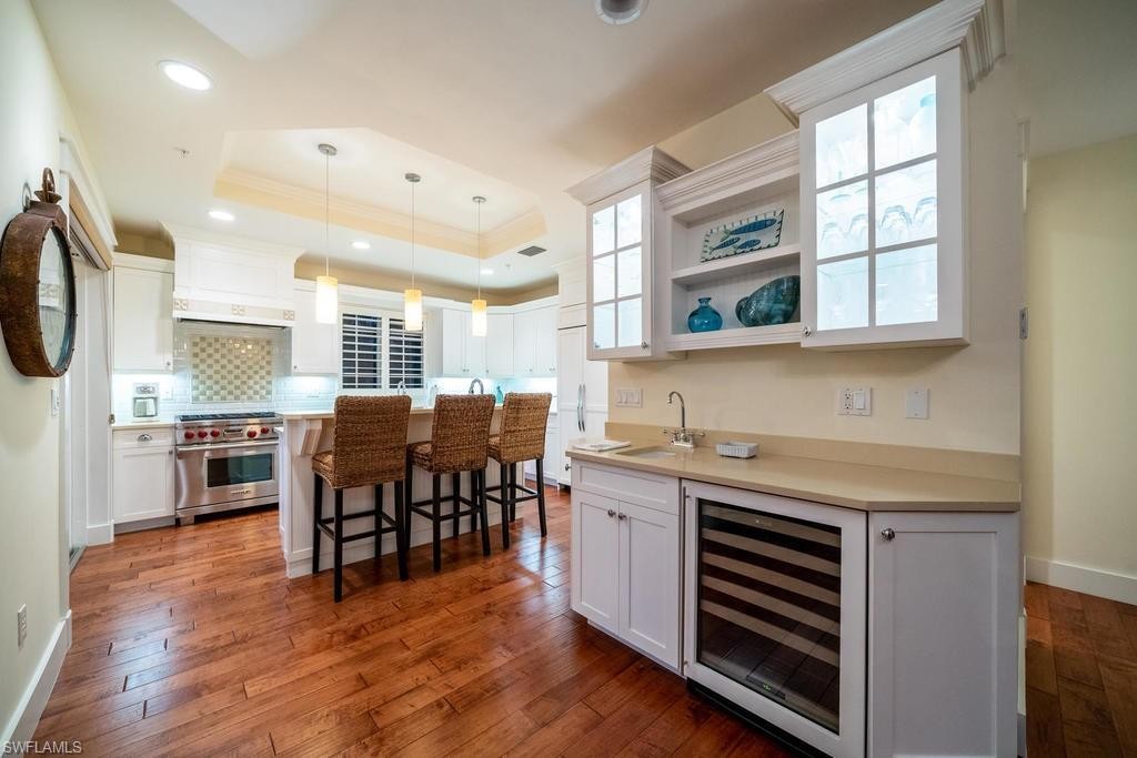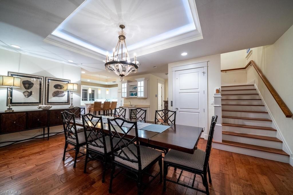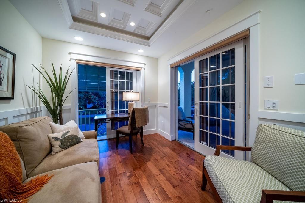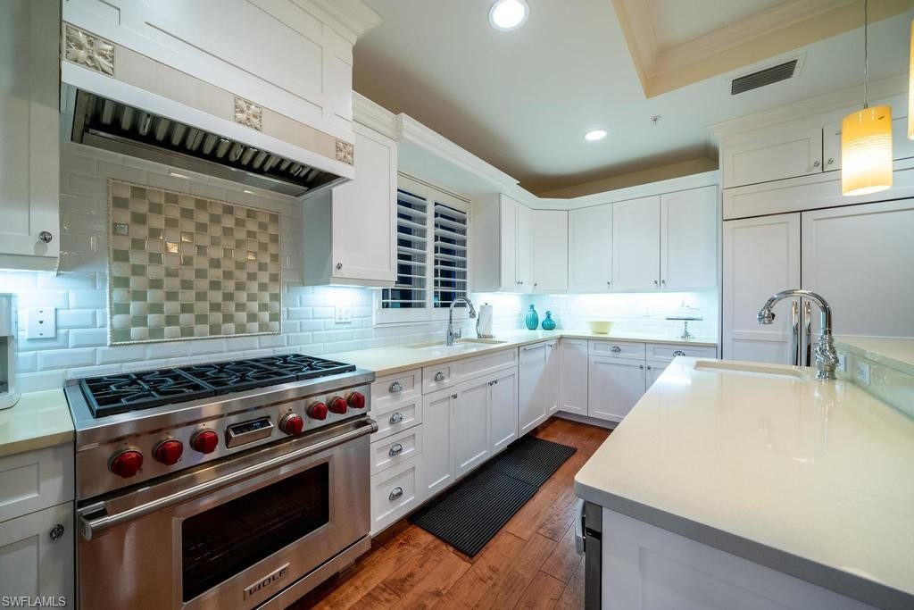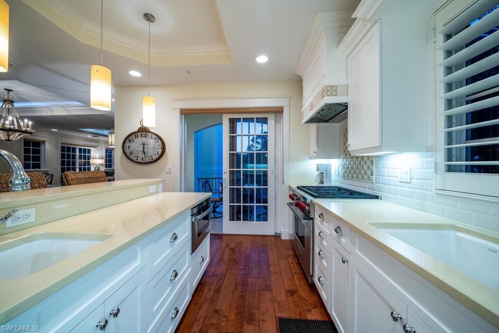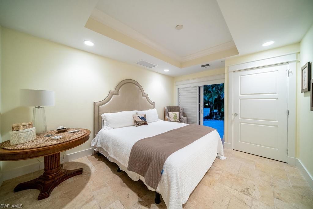 Located within steps of the internationally recognized cultural district of Fifth Avenue South in the heart of Old Naples this stunning three bedroom, plus den condominium has a private two car garage and a private pool. Thoughtfully designed with a great room floor plan, the kitchen features a Wolf range, Subzero refrigerator, and quartz countertops. Multiple balconies overlook the gorgeous landscaping and private pool. The great room features a gas fireplace, wet bar with wine refrigerator, and elegant wood flooring. The expansive outdoor patio garden area with a generous outside living area includes an impressive pool, summer kitchen, and grill. The luxurious master suite is spacious and comfortable with a luxurious master bathroom and walk-in closet. This condo is nestled just blocks from the celebrated beaches of Naples, Florida. Highly sought after and rarely available, this condominium represents a rare opportunity to enjoy the best Naples has to offer.