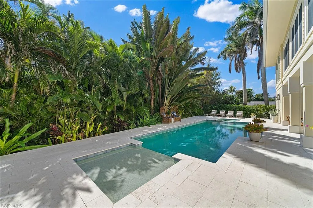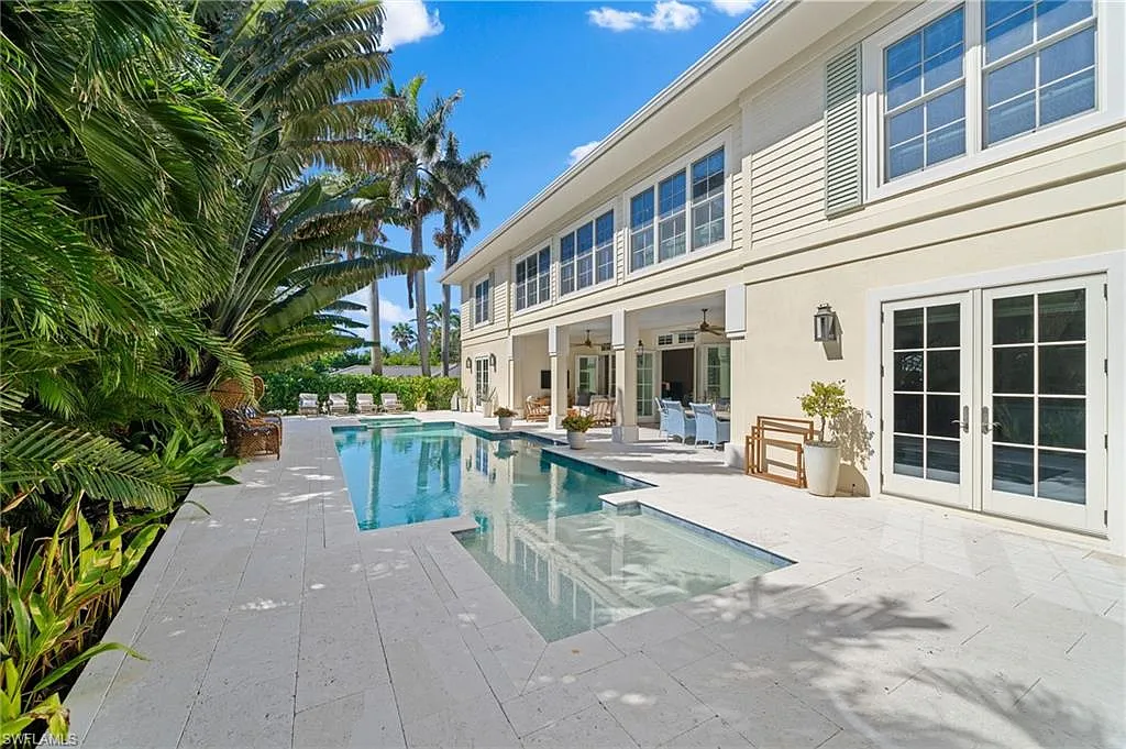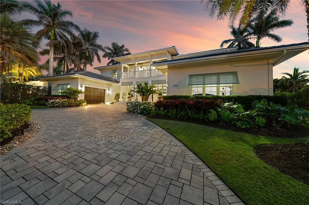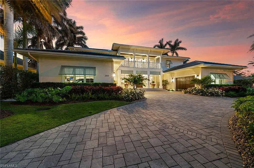 The interior of the home has remained completely unaffected by hurricanes or flooding, with no water intrusion to the interior during any storm event. Designed, built, and decorated by a renowned interior designer, this stunning four bedroom, five bathroom estate blends timeless Southern charm with modern luxury. Boasting two master suites, one on the main level and another upstairs, both feature spa-like ensuite baths with heated floors for ultimate comfort. Step inside to an awe-inspiring great room with soaring ceilings, seamlessly flowing out to a screened in lanai that overlooks an oversized resort style pool, complete with a sun shelf and spa. Custom wide plank oak flooring by Legno Bastone enhances the warmth and elegance of every space. At the heart of the home, the chef designed kitchen is a culinary dream, outfitted with a gas Wolf range, SubZero refrigeration, two beverage drawers, a warming drawer, two dishwashers, and a built-in microwave drawer.