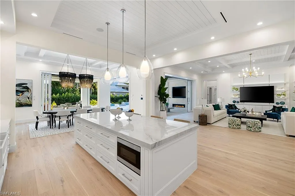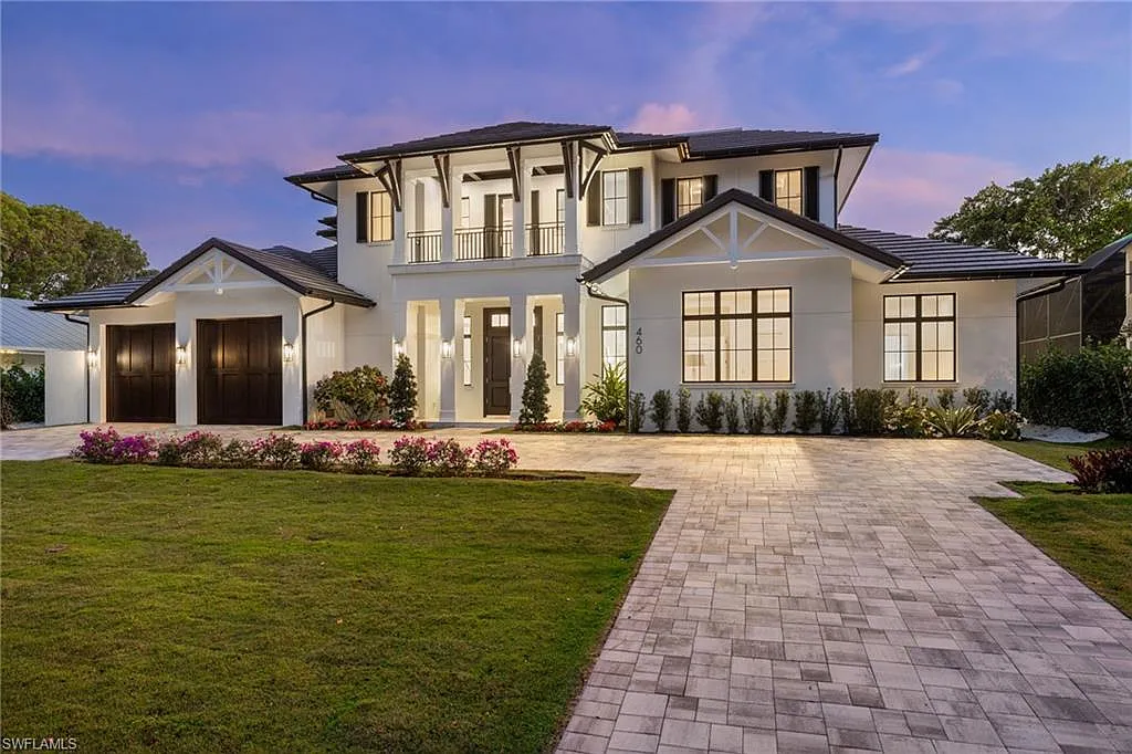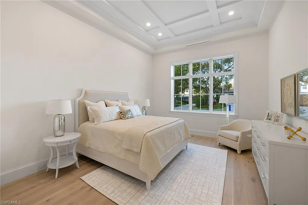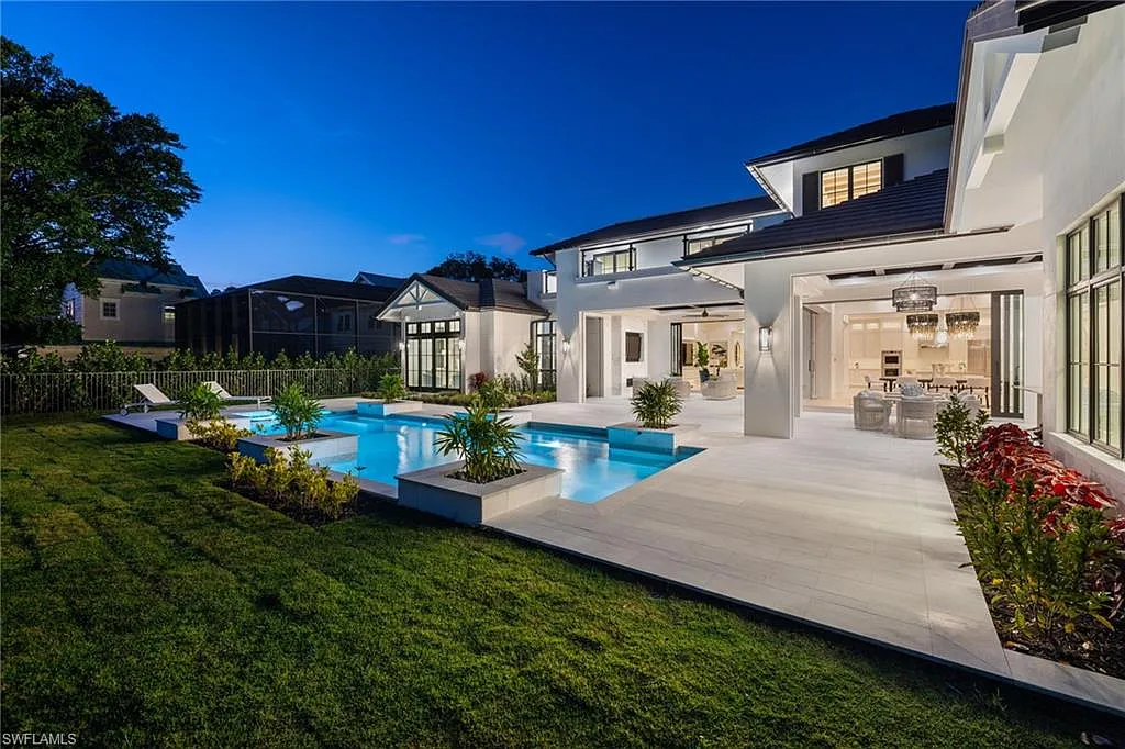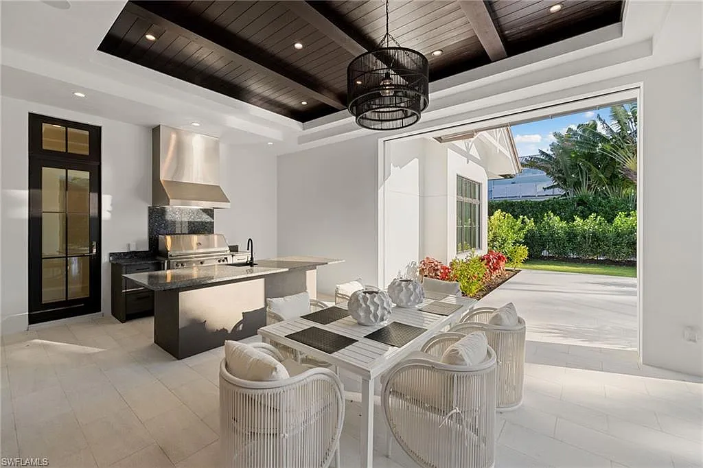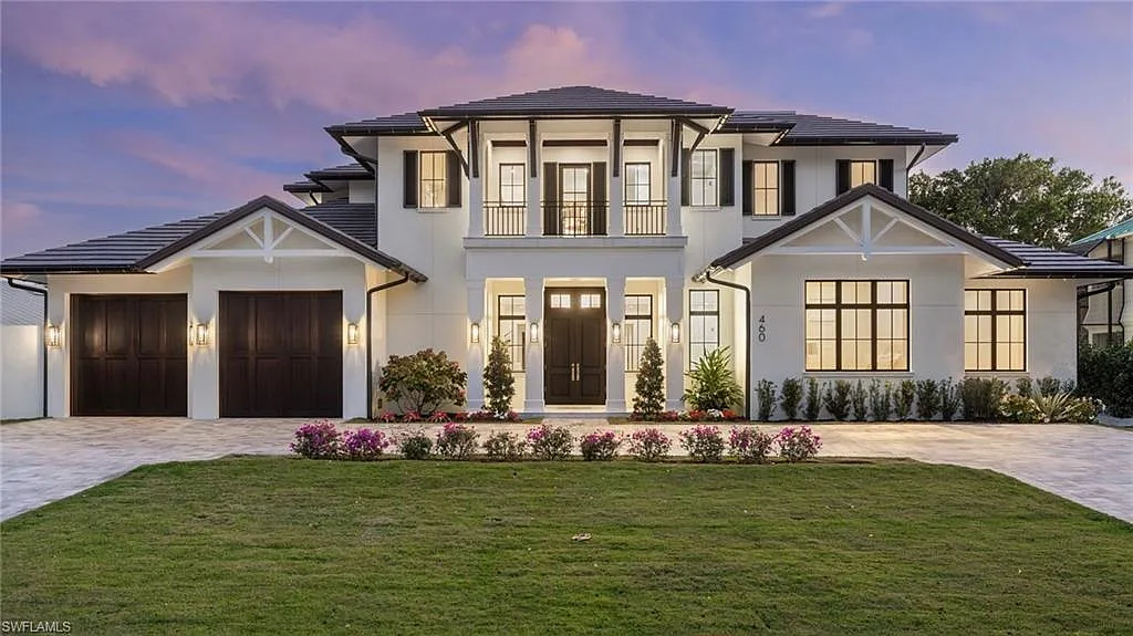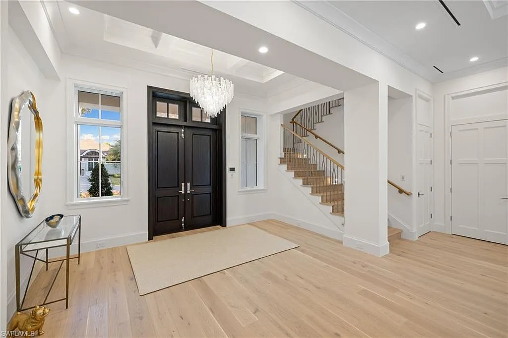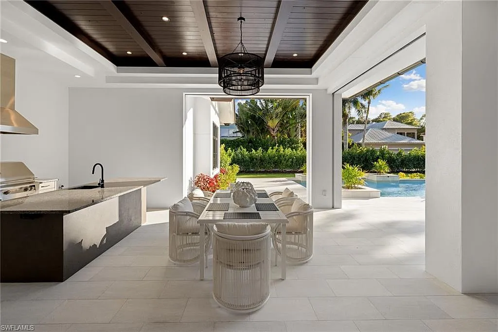 Situated on one of the most prestigious streets in Naples, just moments from its world-renowned sugar sand beaches, this exceptional new construction residence is set on an oversized homesite in the highly desirable X and X500 flood zones allowing for seamless 1st floor living. The home offers five ensuite bedrooms, including a ground-level owner’s suite with a spacious dressing room, study, and a flex room that offers a versatile space, perfect for a home gym, second closet, den or art studio. At the heart of the home is a magnificent great room, where timeless sophistication meets modern innovation. The residence includes a formal dining room, a state-of-the-art kitchen, and the latest in home automation, security, and built-in audio with speakers. The chef’s kitchen features high-end appliances from SubZero, Miele, and Wolf, dual wall ovens, beverage drawers, and a quartzite-topped island.