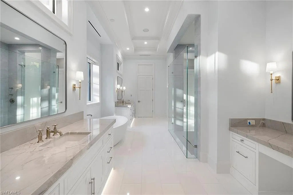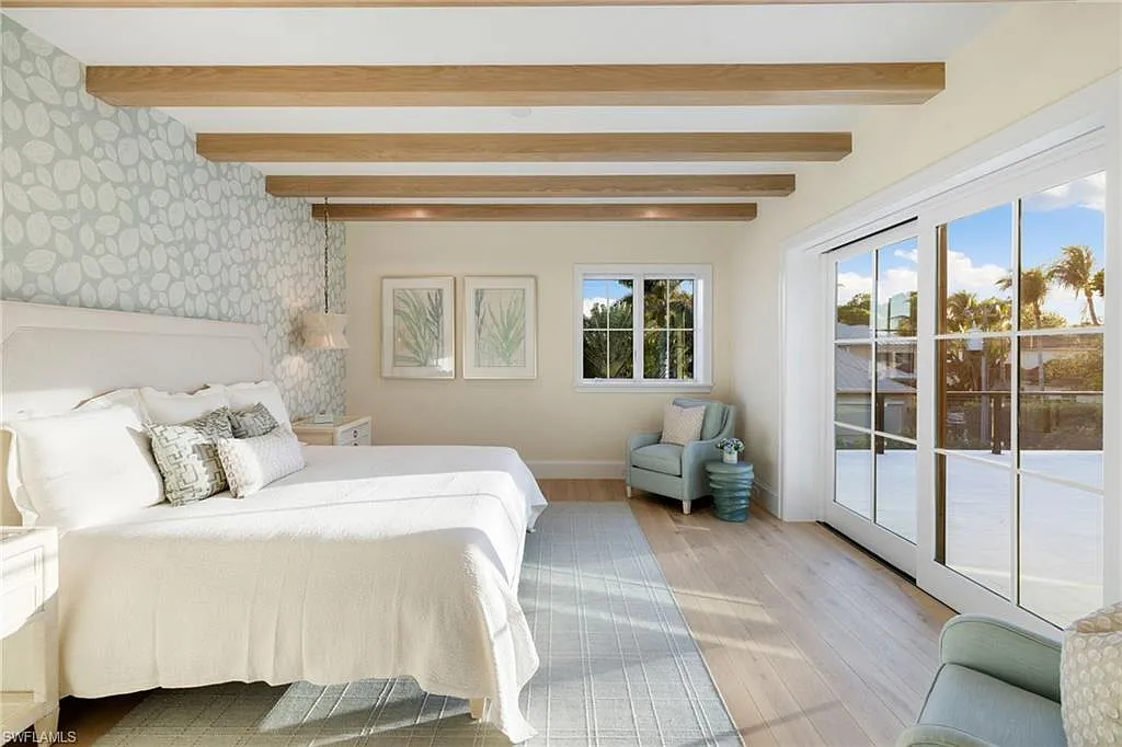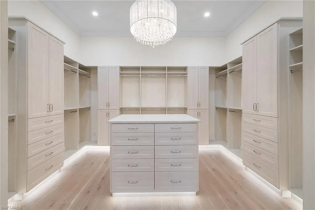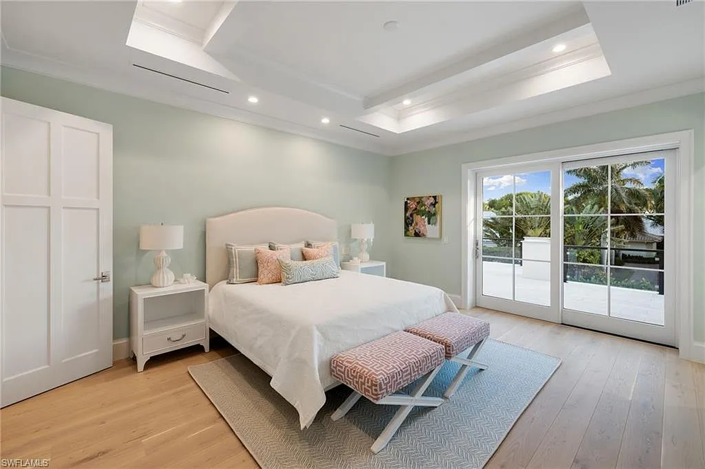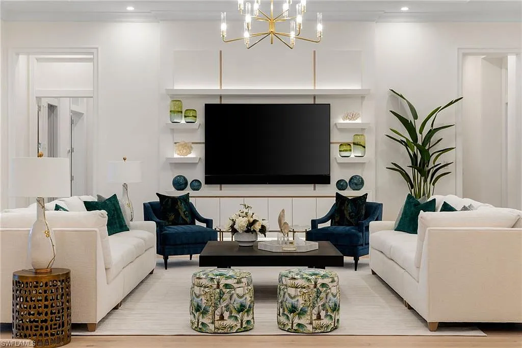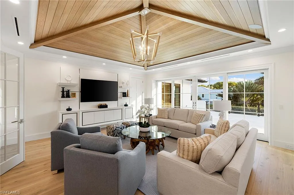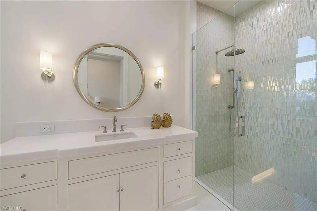 Situated on one of the most prestigious streets in Naples, just moments from its world-renowned sugar sand beaches, this exceptional new construction residence is set on an oversized homesite in the highly desirable X and X500 flood zones allowing for seamless 1st floor living. The home offers five ensuite bedrooms, including a ground-level owner’s suite with a spacious dressing room, study, and a flex room that offers a versatile space, perfect for a home gym, second closet, den or art studio. At the heart of the home is a magnificent great room, where timeless sophistication meets modern innovation. The residence includes a formal dining room, a state-of-the-art kitchen, and the latest in home automation, security, and built-in audio with speakers. The chef’s kitchen features high-end appliances from SubZero, Miele, and Wolf, dual wall ovens, beverage drawers, and a quartzite-topped island.