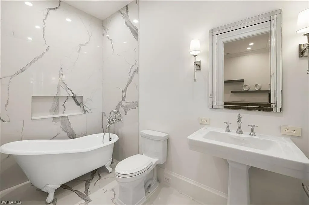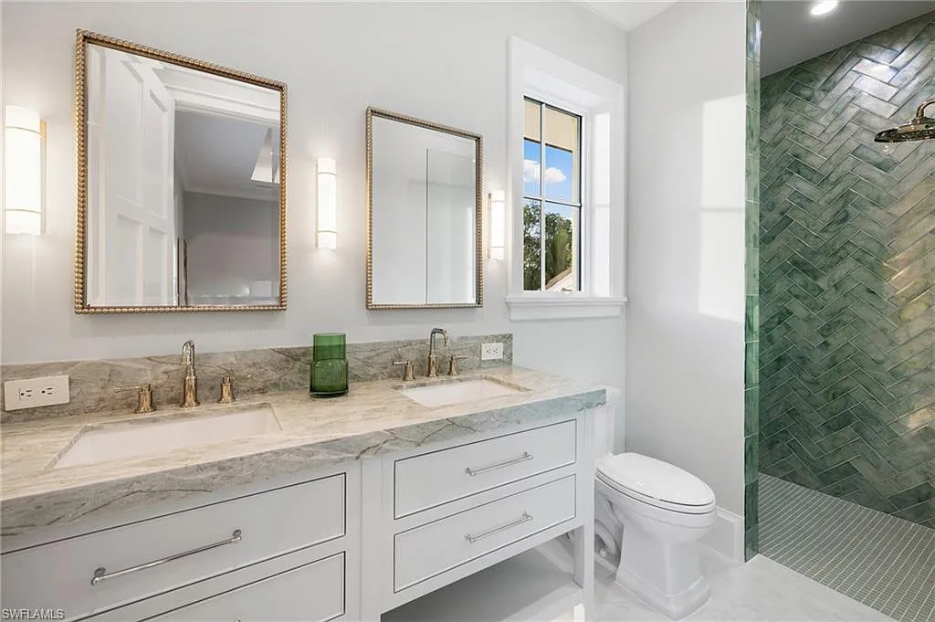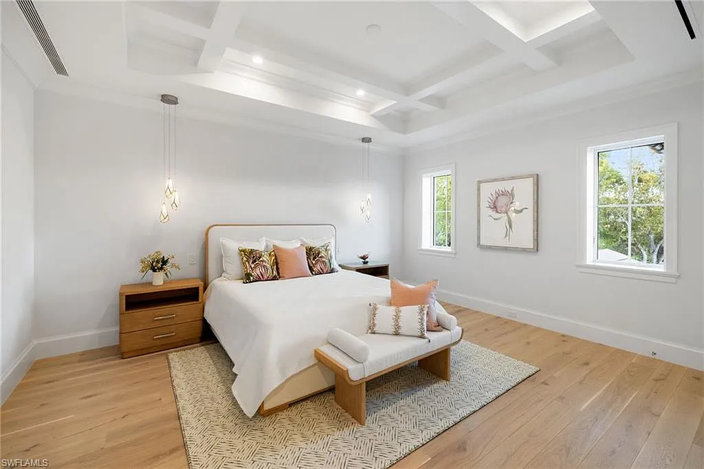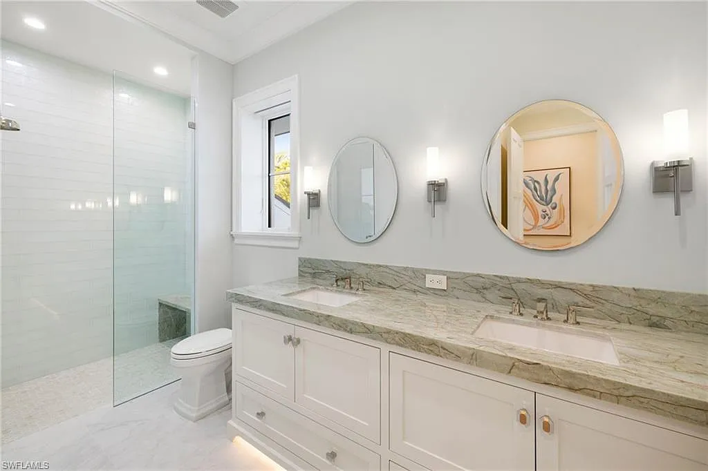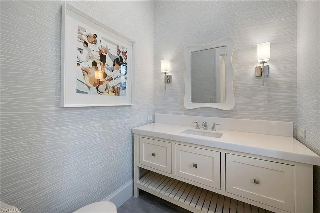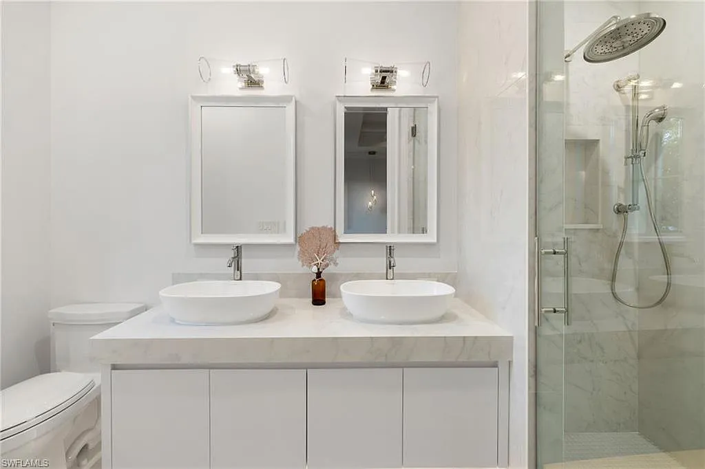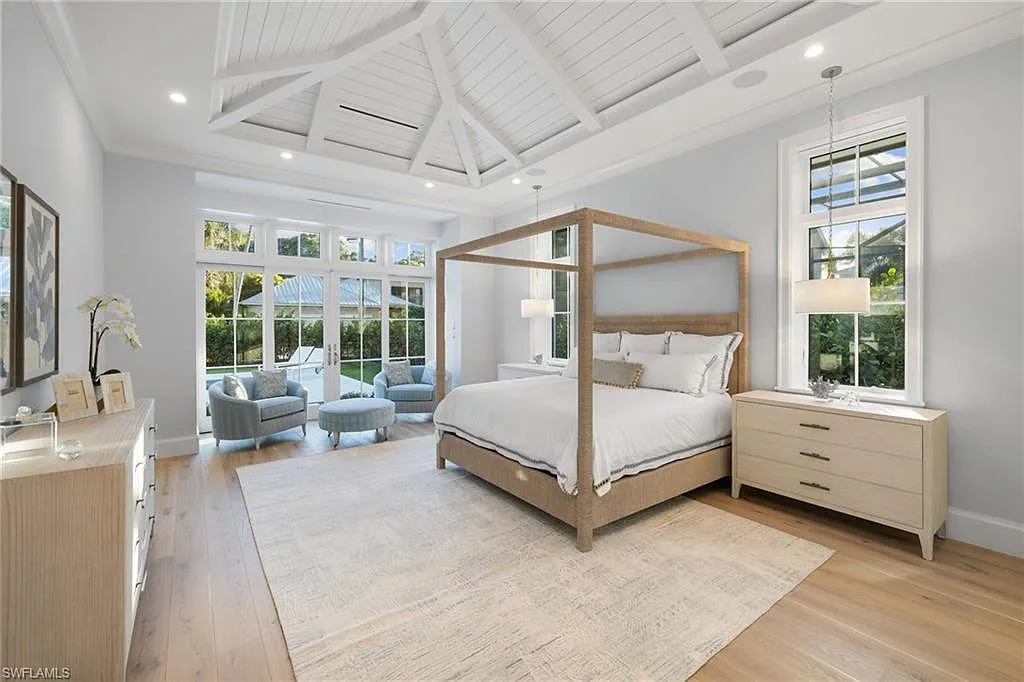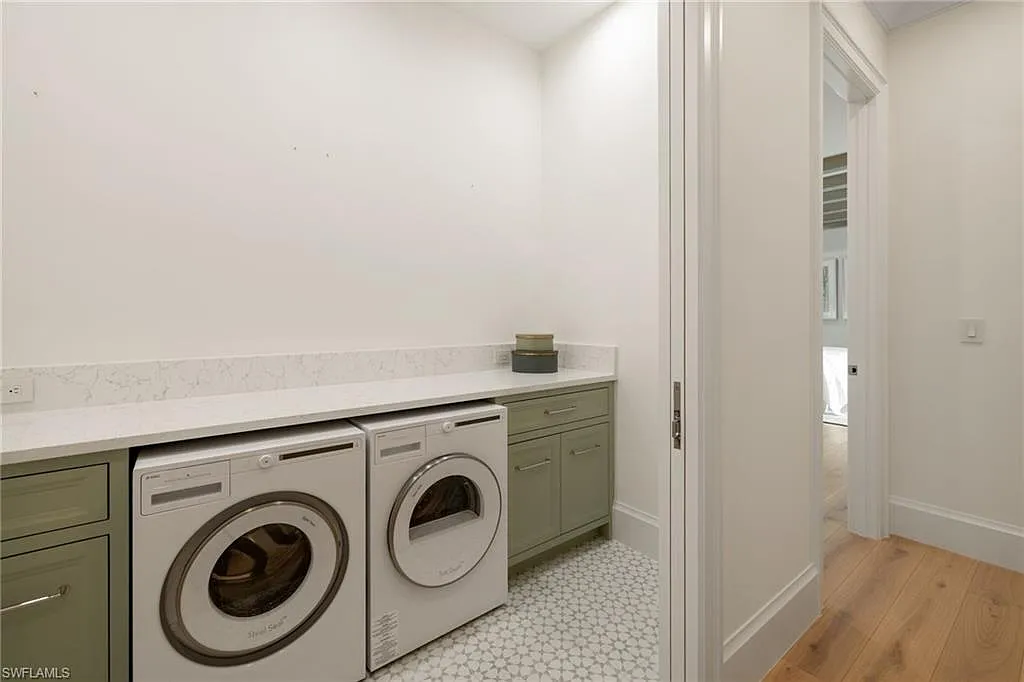 Situated on one of the most prestigious streets in Naples, just moments from its world-renowned sugar sand beaches, this exceptional new construction residence is set on an oversized homesite in the highly desirable X and X500 flood zones allowing for seamless 1st floor living. The home offers five ensuite bedrooms, including a ground-level owner’s suite with a spacious dressing room, study, and a flex room that offers a versatile space, perfect for a home gym, second closet, den or art studio. At the heart of the home is a magnificent great room, where timeless sophistication meets modern innovation. The residence includes a formal dining room, a state-of-the-art kitchen, and the latest in home automation, security, and built-in audio with speakers. The chef’s kitchen features high-end appliances from SubZero, Miele, and Wolf, dual wall ovens, beverage drawers, and a quartzite-topped island.