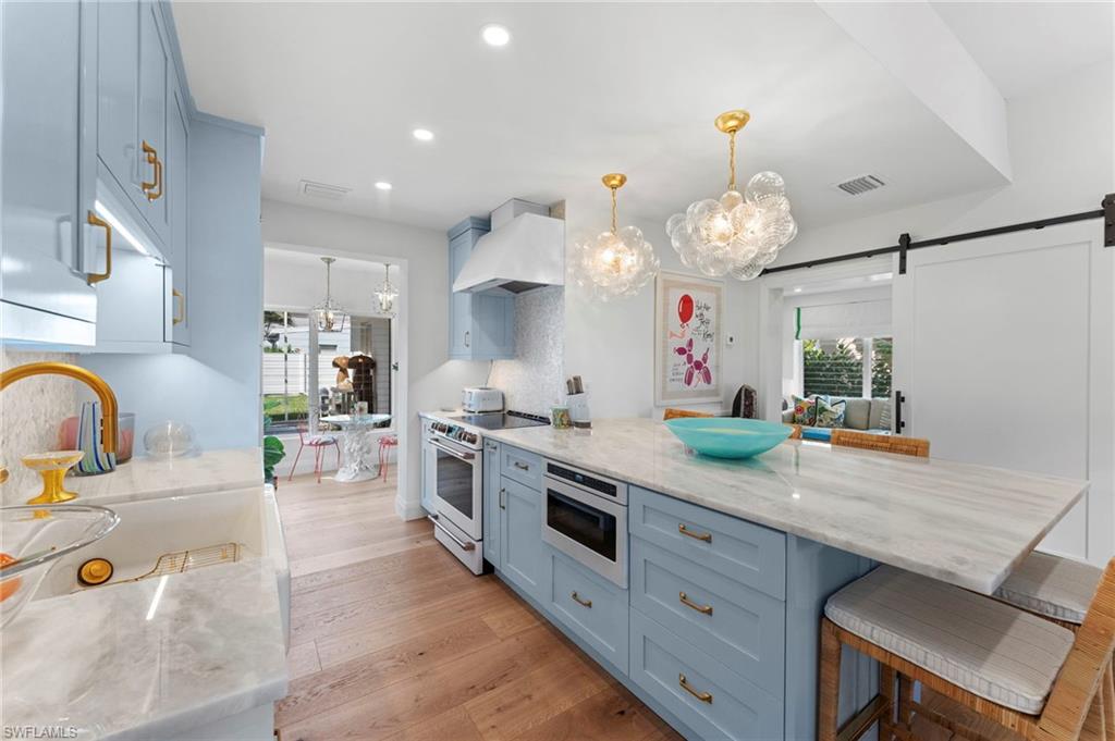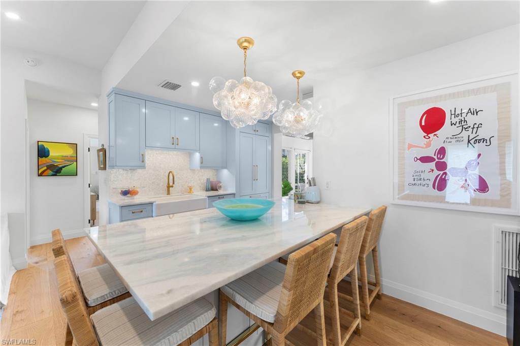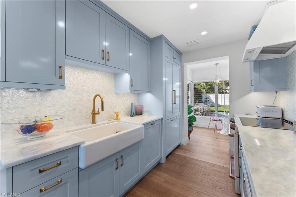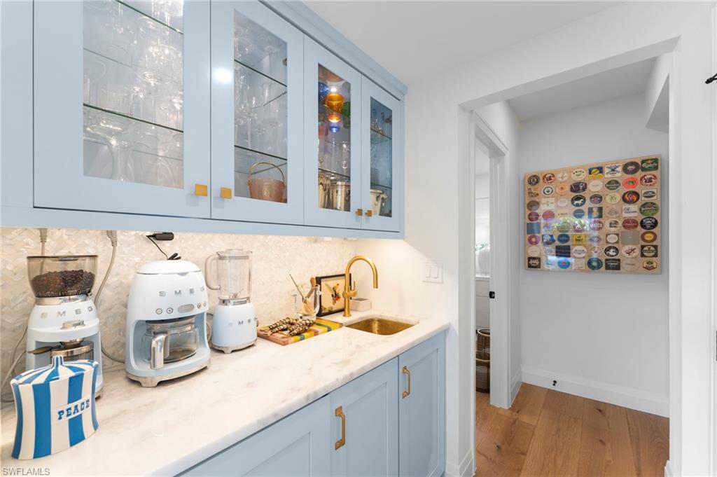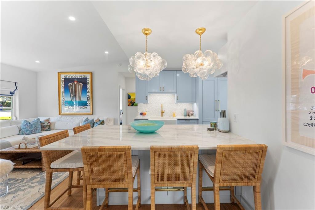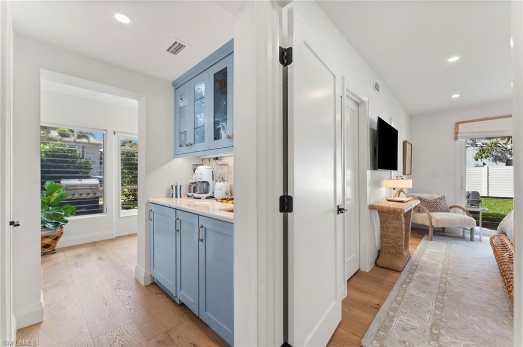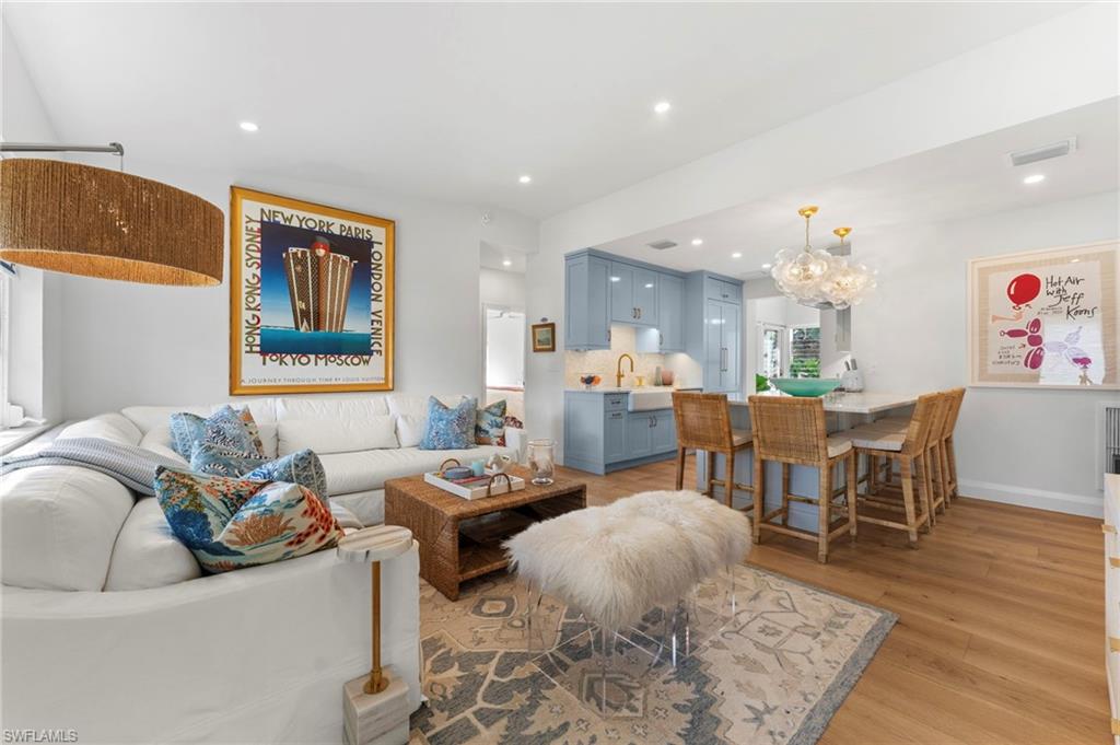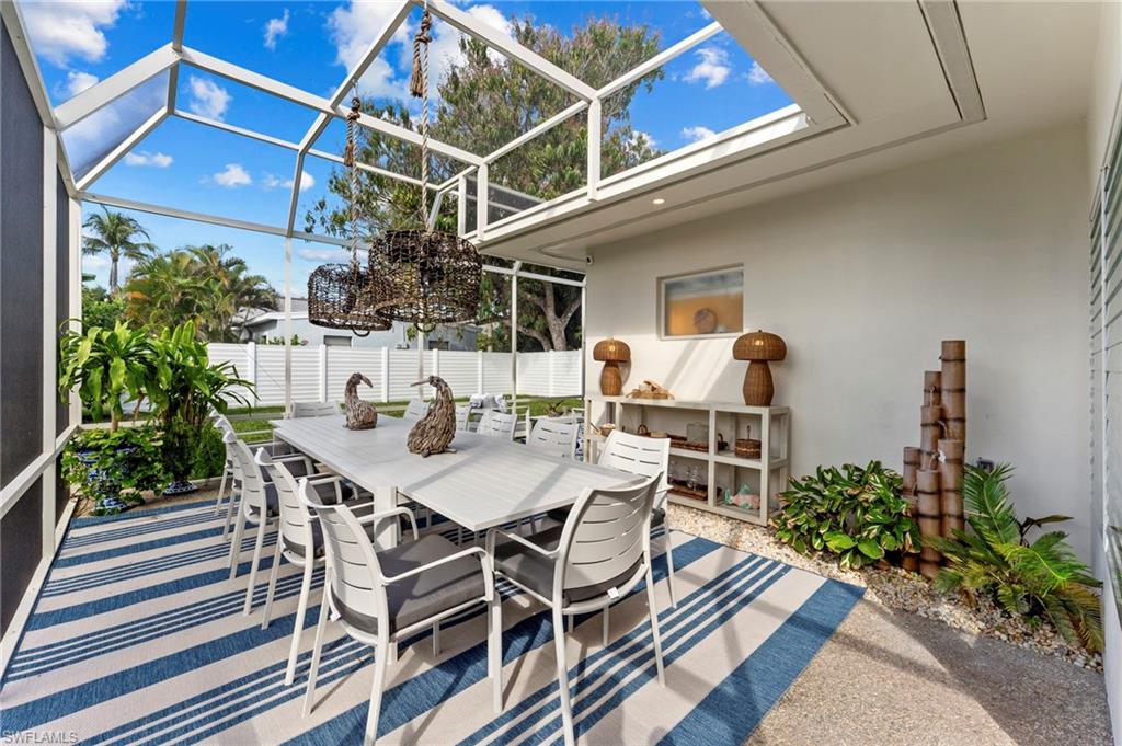 | Experience Olde Naples charm at 692 W Lake Dr! This beautifully renovated 3 bedroom plus den, 2 bathroom cottage style home with single stall garage blends classic appeal with modern upgrades, offering a warm and inviting living space just waiting for you to enjoy, all within steps of 5th Avenue South and Gulf beaches! From the moment you arrive, you’ll be drawn in by the home’s character and its timeless charm, which was thoughtfully updated with the most recent renovations completed in 2023. Inside, warm wood flooring flows throughout the main living areas and bedrooms, creating an elegant yet cozy atmosphere. This home is the perfect cottage retreat or an ideal pied-à-terre, offering charm, comfort, and convenience in a beautiful setting. Designed with an open and seamless flow throughout the main living areas, it’s perfect for entertaining or simply enjoying the space to its fullest. The kitchen features marble counters, sleek new cabinets, and top-of-the-line Miele, Cafe, and Asko appliances. A wet-bar off the eat-in-kitchen offers additional cabinet storage, counter space, a beverage chiller and stand-alone ice maker, with direct lanai access for easy indoor-outdoor living. |