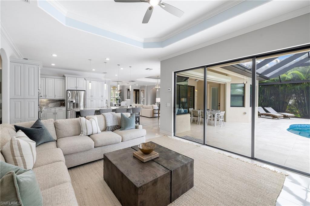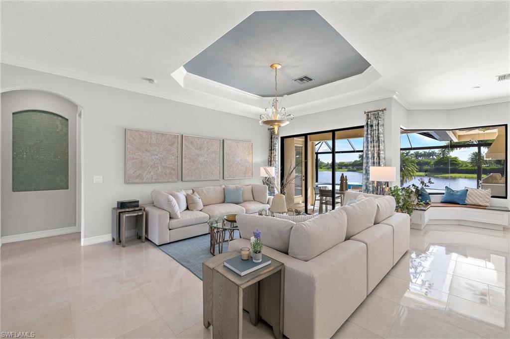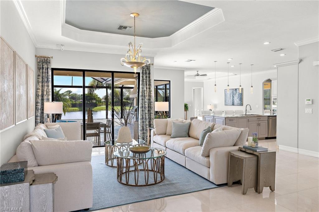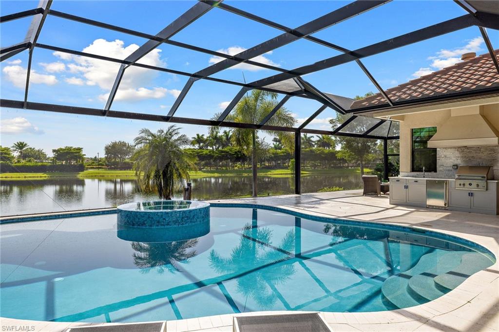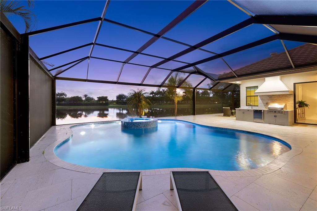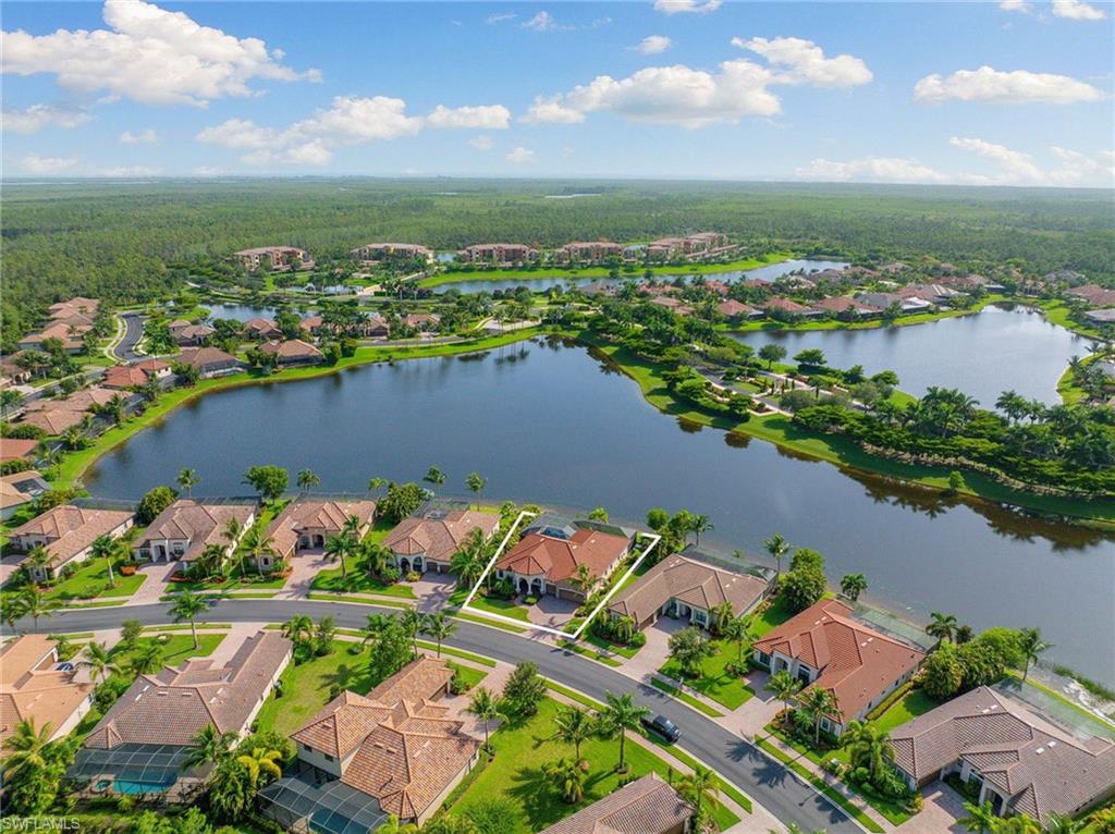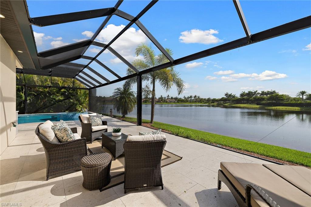 IMMEDIATE GOLF MEMBERSHIP & TURNKEY FURNISHED! Welcome to your dream oasis in prestigious Treviso Bay, a gated TPC golf community where luxury meets convenience and every day feels like a vacation. Nestled against serene long lake views on a private, quiet street, this customized single family residence is a masterpiece of modern design and functionality, offering unparalleled comfort and style, a golf and social membership with no waiting list, resort-style living, and stunning waterfront views. Step into your private retreat and be greeted by an open floor plan that seamlessly blends living, dining, and family areas, creating the perfect space for both entertaining and relaxation. The gourmet kitchen, featuring high level quartzite counters, top-of-the-line stainless steel GE appliances, including a natural gas cooktop for the discerning chef, and updated cabinetry that combines style with practicality. With a built-in wine cooler, island seating, and a large covered seating area just steps away on the extended lanai, hosting unforgettable gatherings has never been easier. Escape to your own private oasis outdoors, where a custom heated pool and spa beckon you to unwind and soak up the Florida sunshine. The shell stone pavers lead the way to the summer kitchen, where you can grill up your favorite meals while enjoying the tranquil sounds of nature and the refreshing breeze off the lake. Picture window screens frame the breathtaking views of the shimmering lake, allowing natural light to flood the space and create an inviting atmosphere that instantly feels like home. With four bedrooms, including a spacious serene primary suite, there’s plenty of room for everyone to relax in comfort. Additional upgrades such as a generator, impact glass and electric storm shutters add convenience and peace of mind to daily life. The luxury doesn’t stop there as this home also comes with a full TPC golf and social membership, giving you access to world-class amenities and activities all just minutes from downtown Naples and pristine sugar sand Gulf beaches. Don’t miss your chance to experience the ultimate in resort-style living and start living the life you’ve always dreamed of.