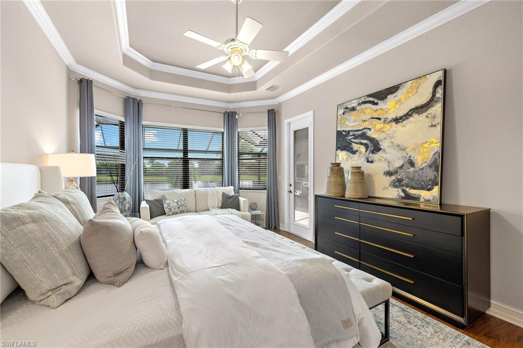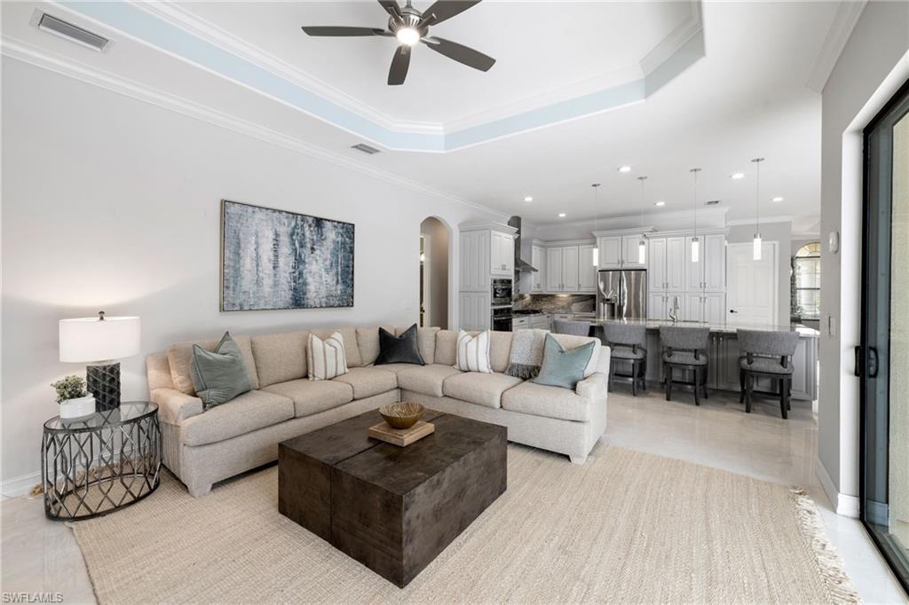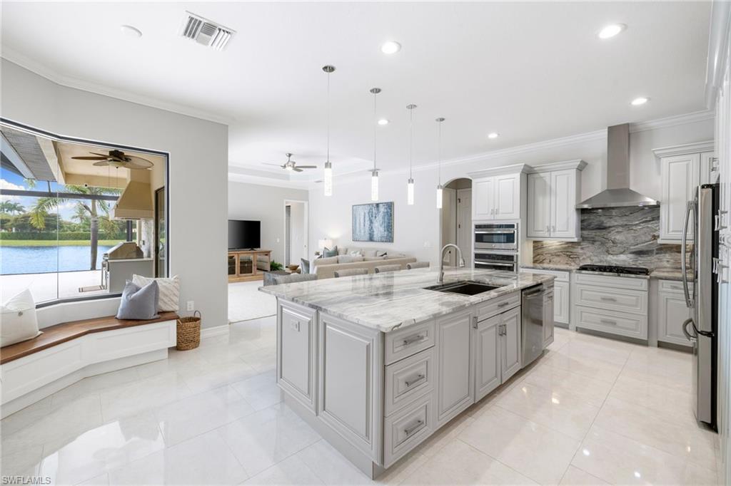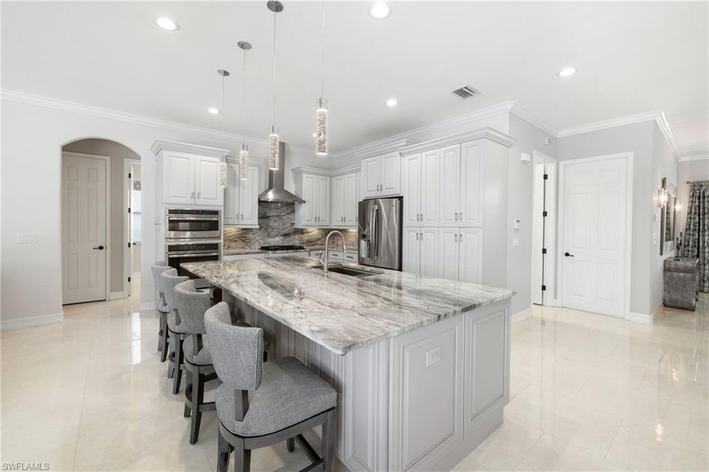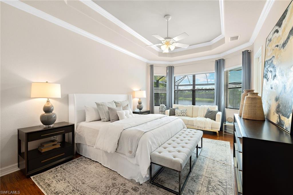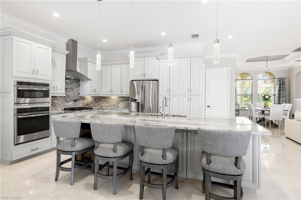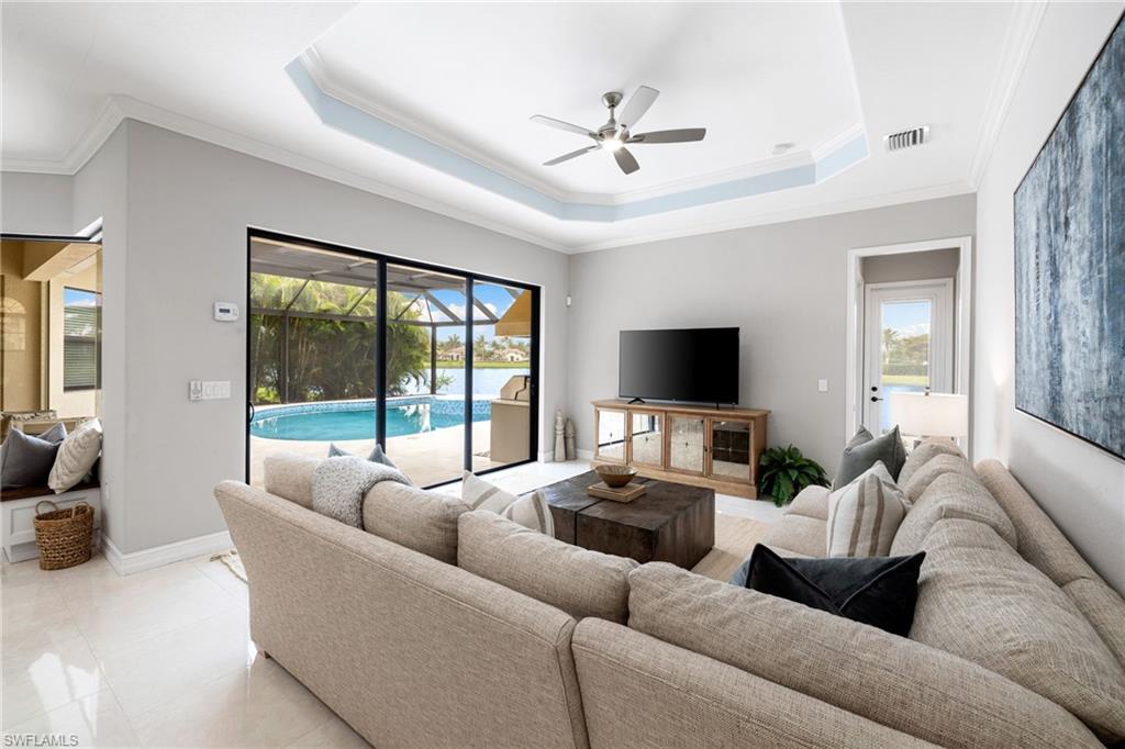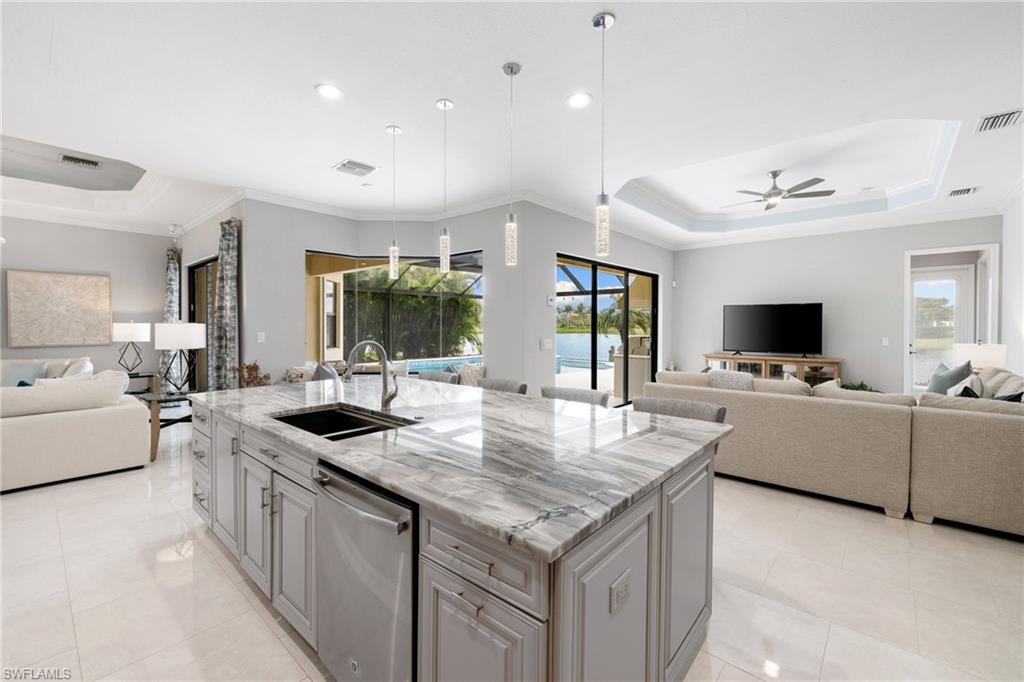IMMEDIATE GOLF MEMBERSHIP & TURNKEY FURNISHED! Welcome to your dream oasis in prestigious Treviso Bay, a gated TPC golf community where luxury meets convenience and every day feels like a vacation. Nestled against serene long lake views on a private, quiet street, this customized single family residence is a masterpiece of modern design and functionality, offering unparalleled comfort and style, a golf and social membership with no waiting list, resort-style living, and stunning waterfront views. Step into your private retreat and be greeted by an open floor plan that seamlessly blends living, dining, and family areas, creating the perfect space for both entertaining and relaxation. The gourmet kitchen, featuring high level quartzite counters, top-of-the-line stainless steel GE appliances, including a natural gas cooktop for the discerning chef, and updated cabinetry that combines style with practicality. With a built-in wine cooler, island seating, and a large covered seating area just steps away on the extended lanai, hosting unforgettable gatherings has never been easier. Escape to your own private oasis outdoors, where a custom heated pool and spa beckon you to unwind and soak up the Florida sunshine. The shell stone pavers lead the way to the summer kitchen, where you can grill up your favorite meals while enjoying the tranquil sounds of nature and the refreshing breeze off the lake. Picture window screens frame the breathtaking views of the shimmering lake, allowing natural light to flood the space and create an inviting atmosphere that instantly feels like home. With four bedrooms, including a spacious serene primary suite, there’s plenty of room for everyone to relax in comfort. Additional upgrades such as a generator, impact glass and electric storm shutters add convenience and peace of mind to daily life. The luxury doesn’t stop there as this home also comes with a full TPC golf and social membership, giving you access to world-class amenities and activities all just minutes from downtown Naples and pristine sugar sand Gulf beaches. Don’t miss your chance to experience the ultimate in resort-style living and start living the life you’ve always dreamed of.